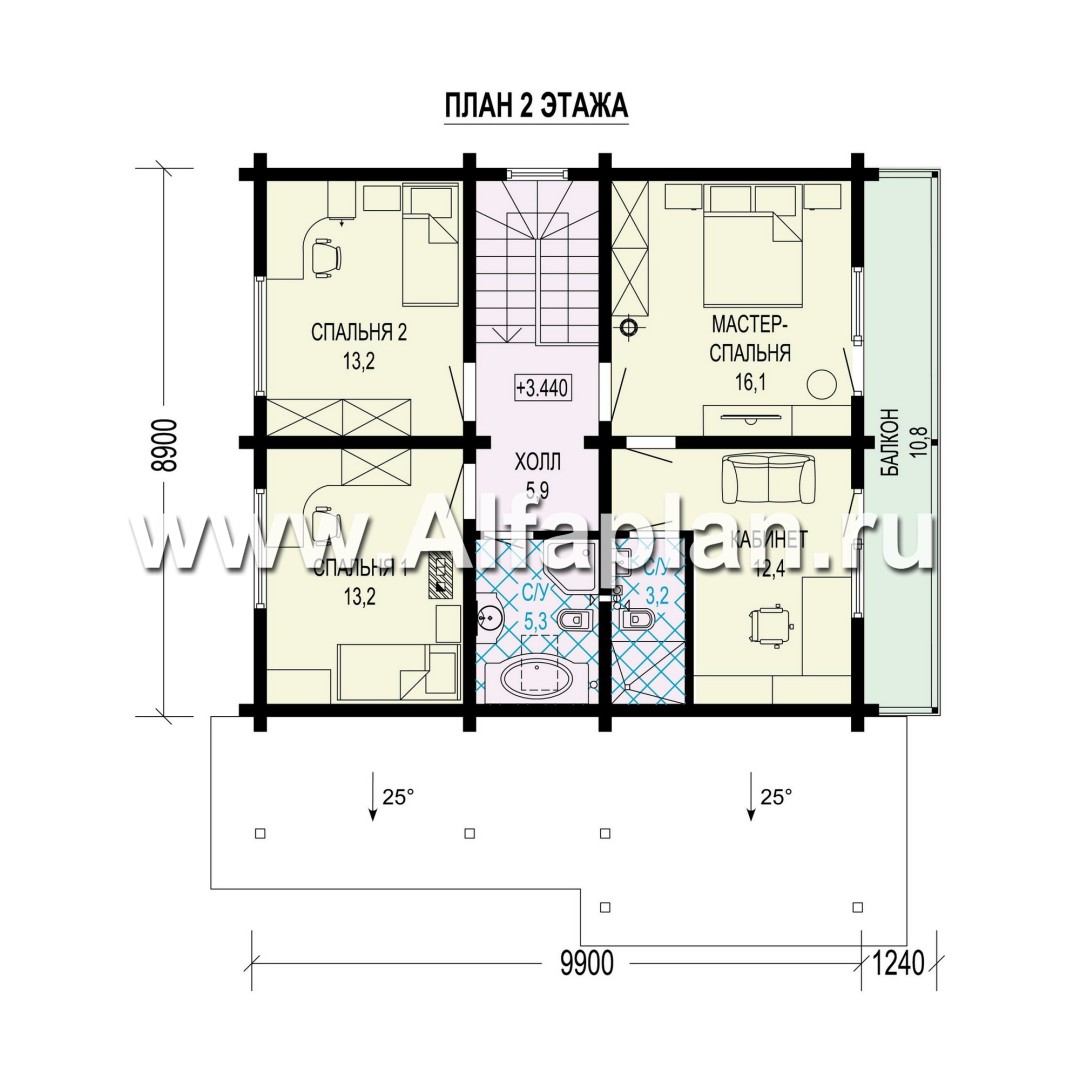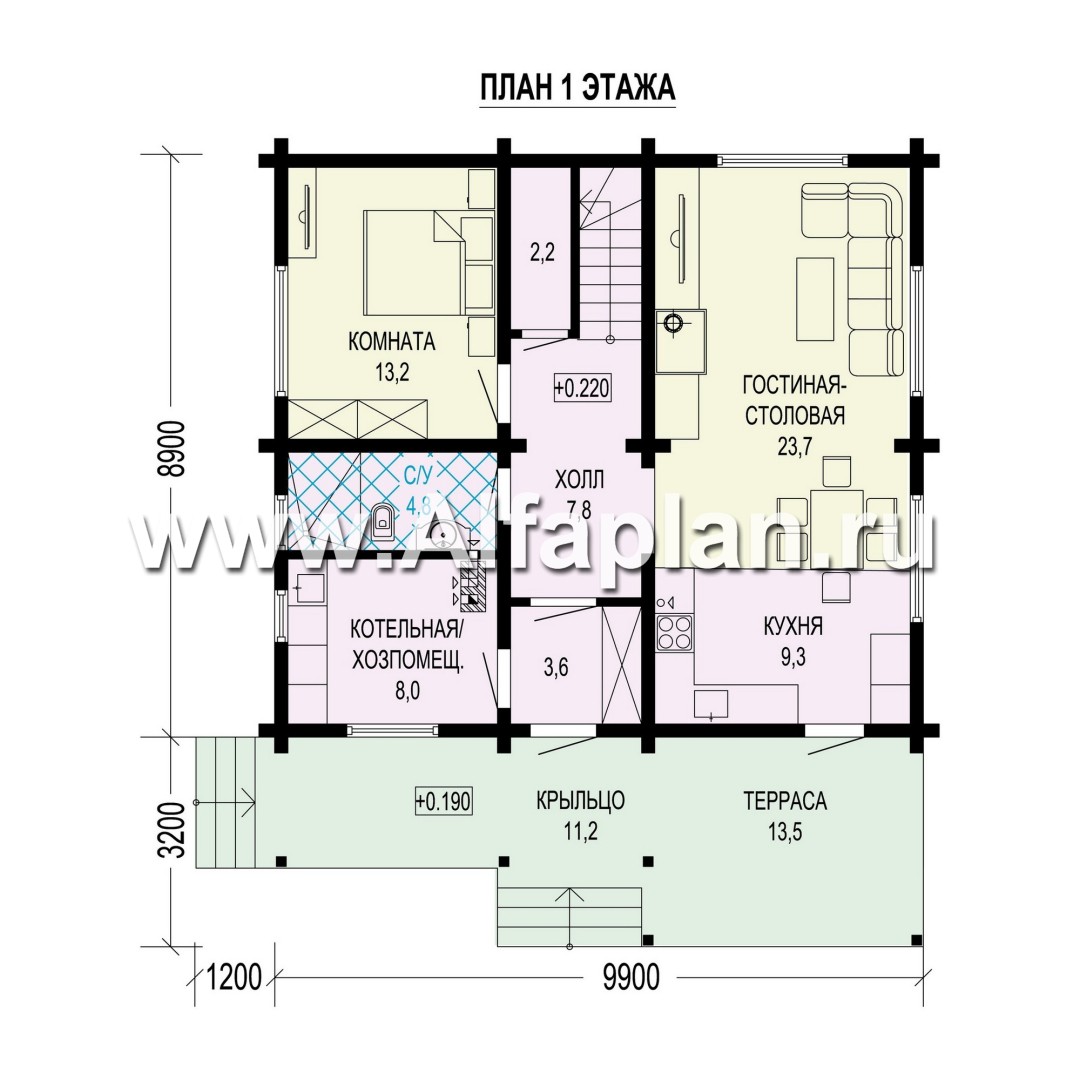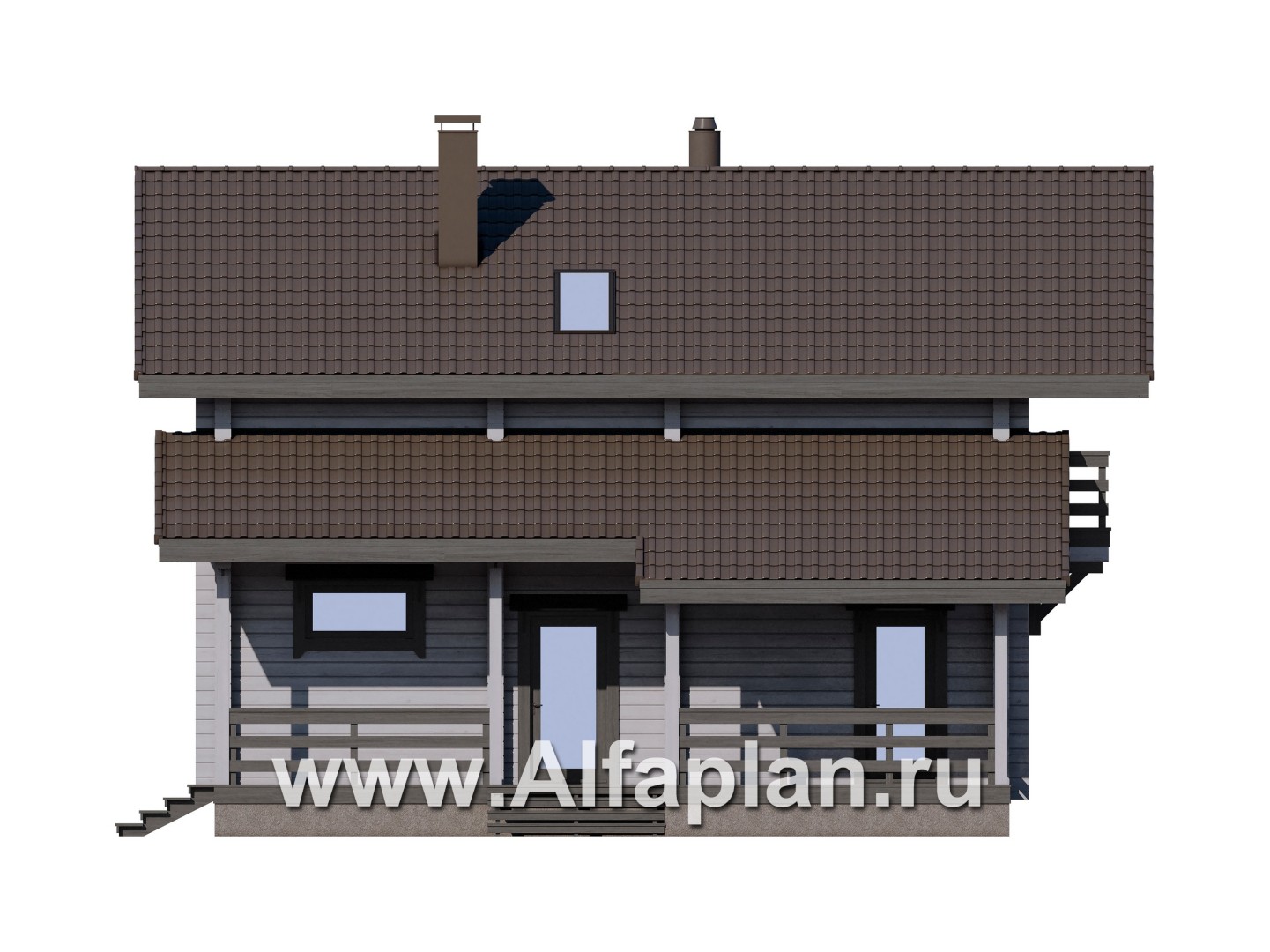 G152 Проект двухэтажного дома из бруса, планировка с кабинетом на 1 эт и с террасой