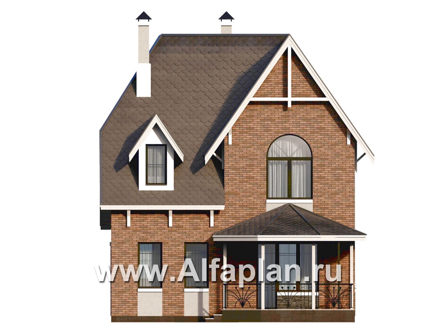 «Аврора» - проект двухэтажного дома из газобетона с эркером и с террасой