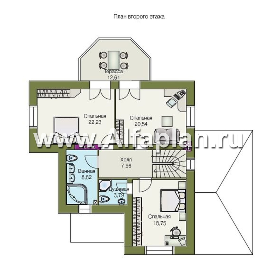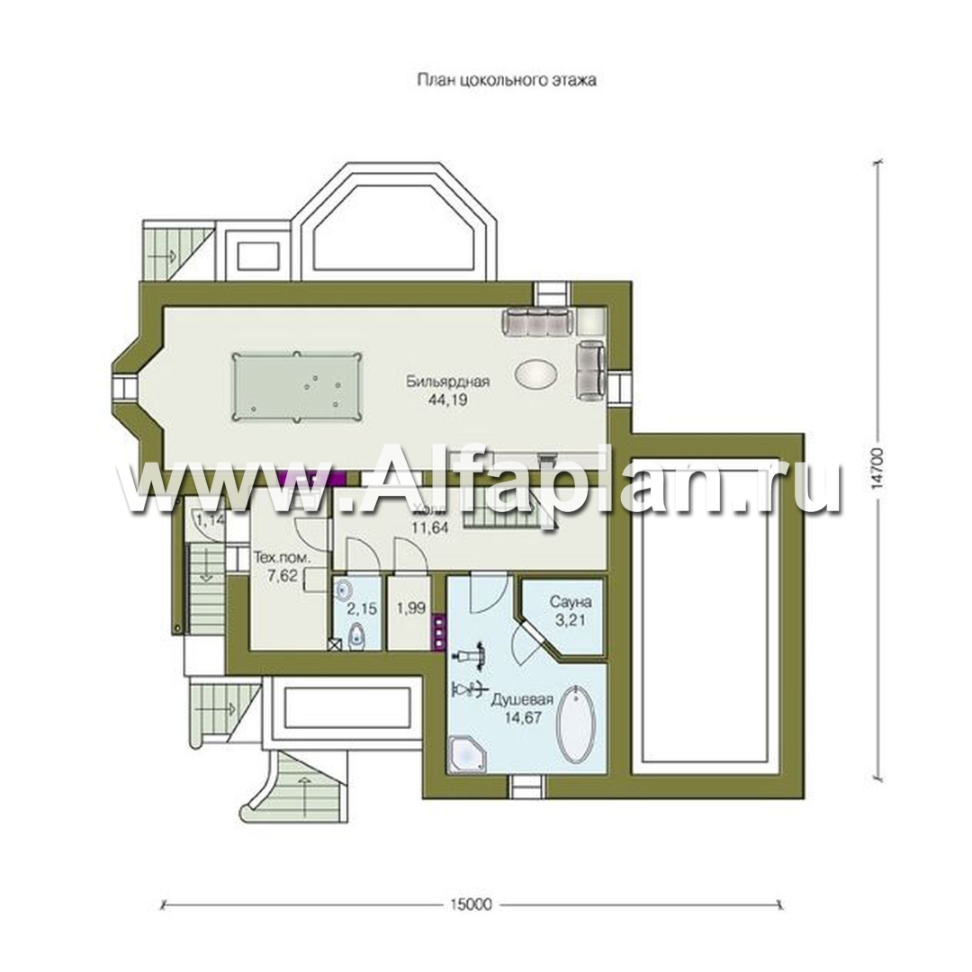 «Приорат Плюс» - проект дома с мансардой, кабинет на 1 эт, с террасой и с эркером, с биллиардной в цокольном этаже, гараж на 1 авто