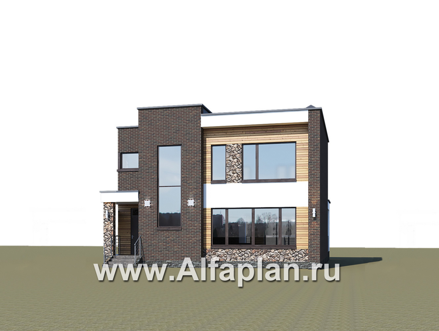 «Эрго» - проект двухэтажного дома 10х10м, с плоской кровлей, и с террасой