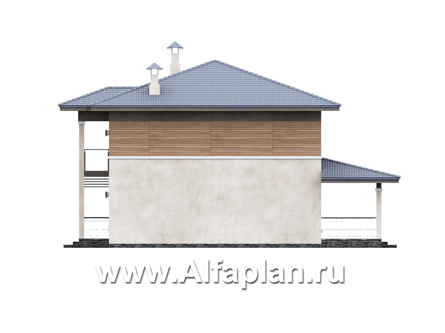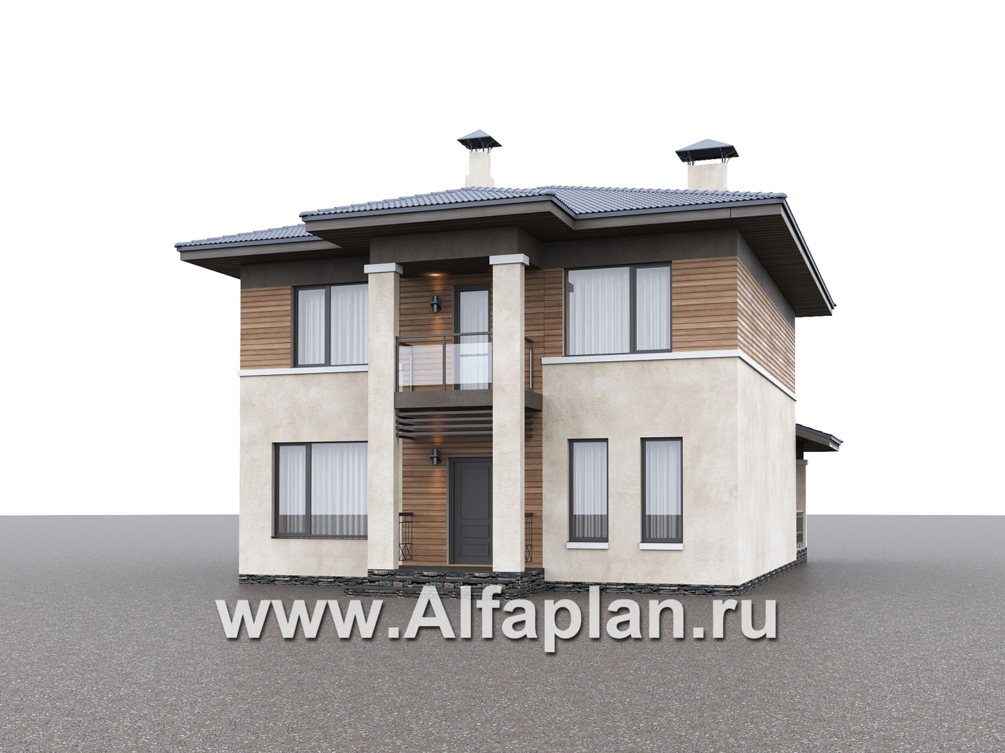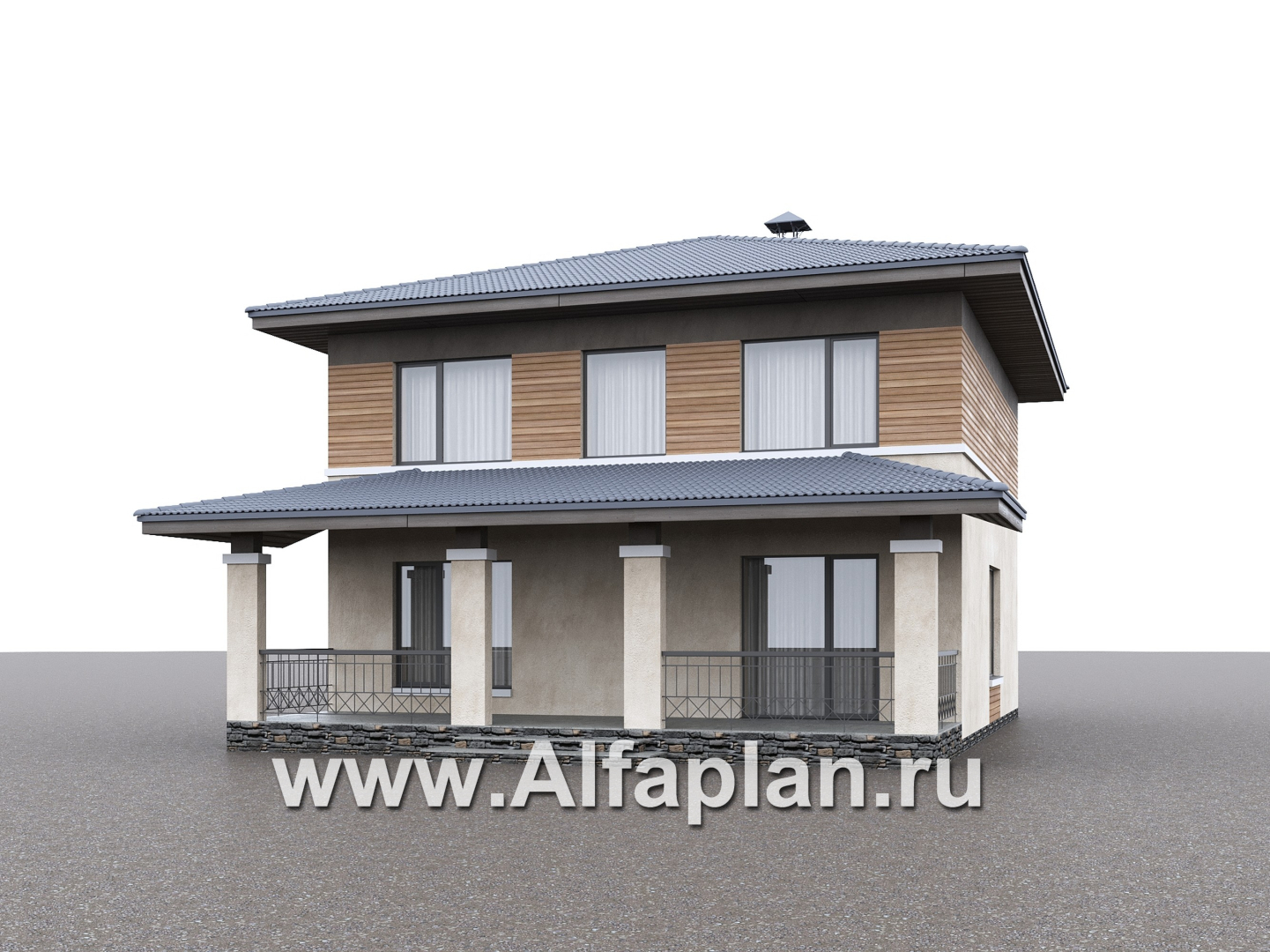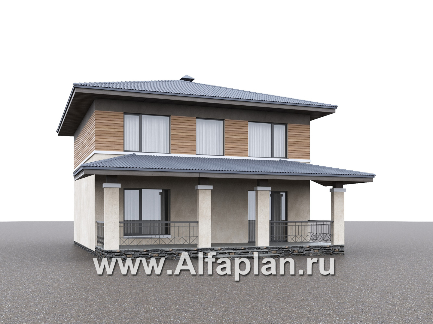 «Невада» - проект двухэтажного дома из газобетона, с террасой, в стиле Райта