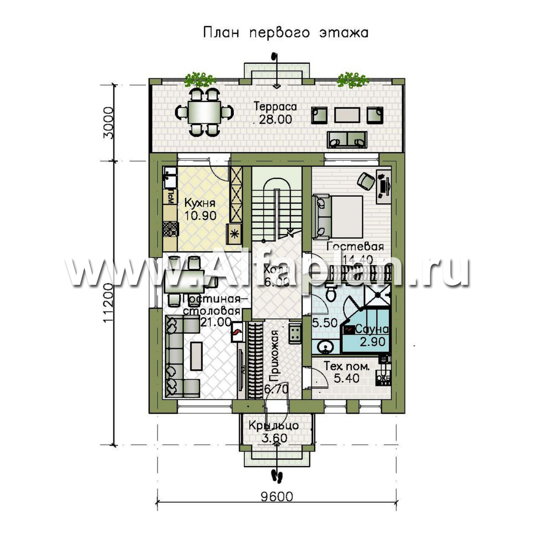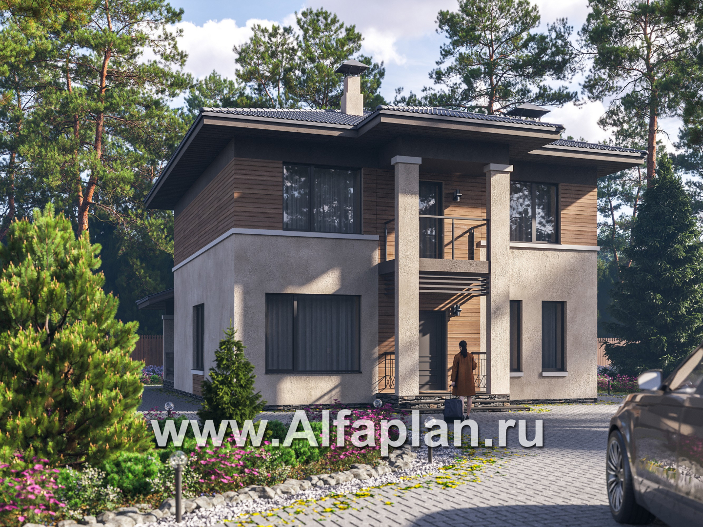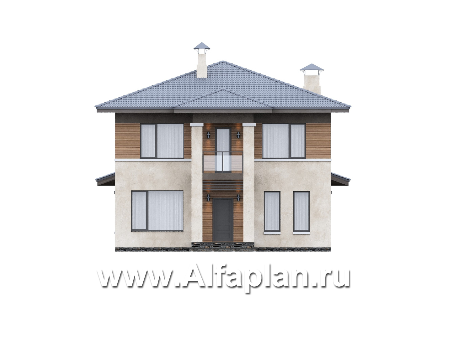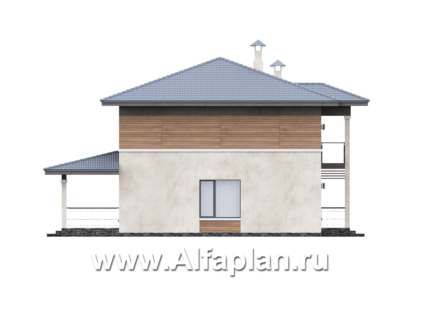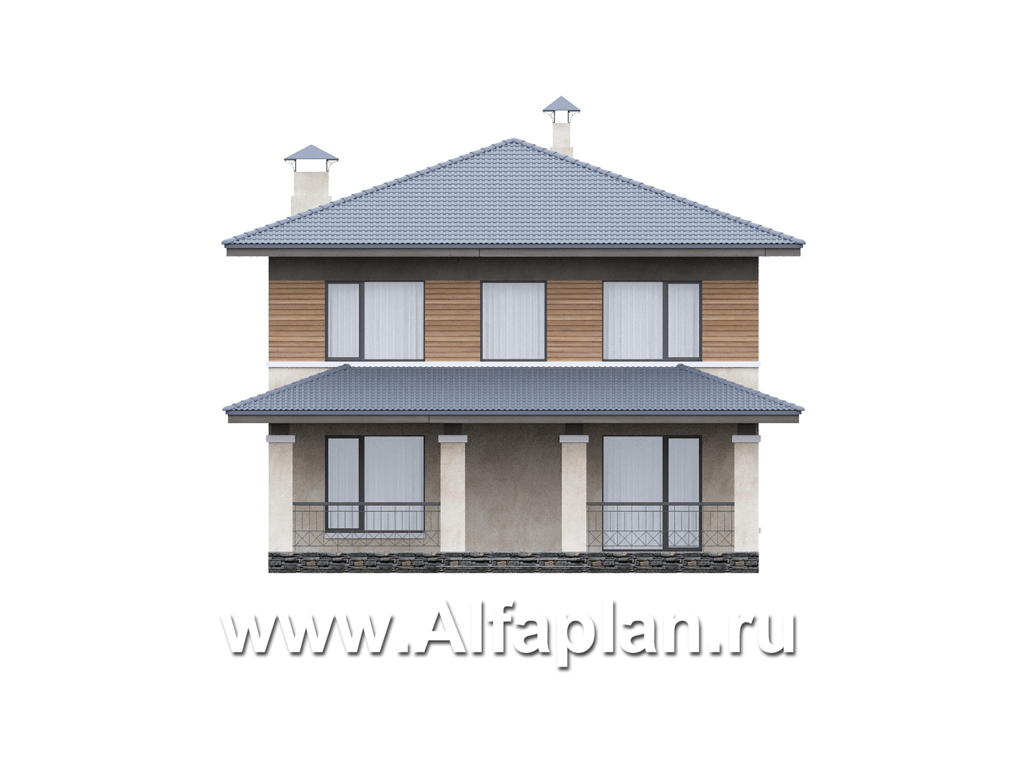 «Невада» - проект двухэтажного дома из газобетона, с террасой, в стиле Райта