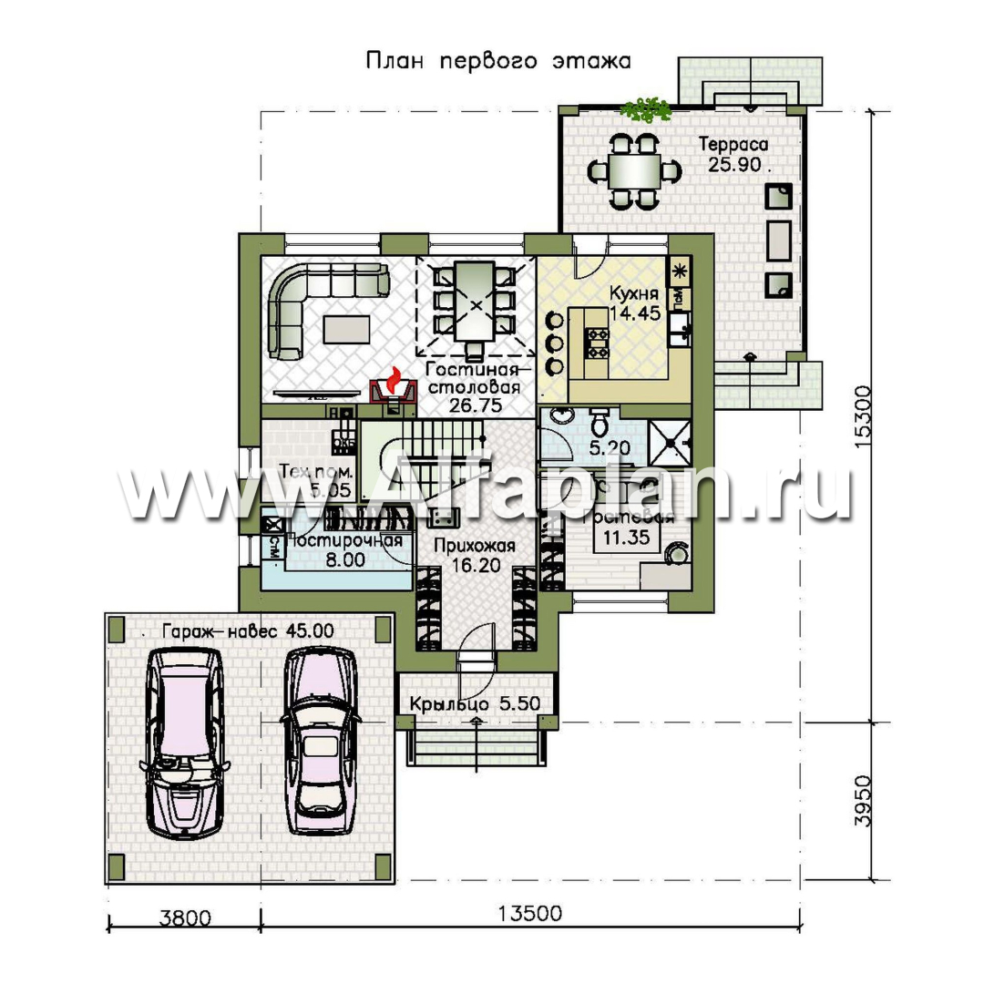 Габаритные размеры дома 11.6 м x 15.6 м