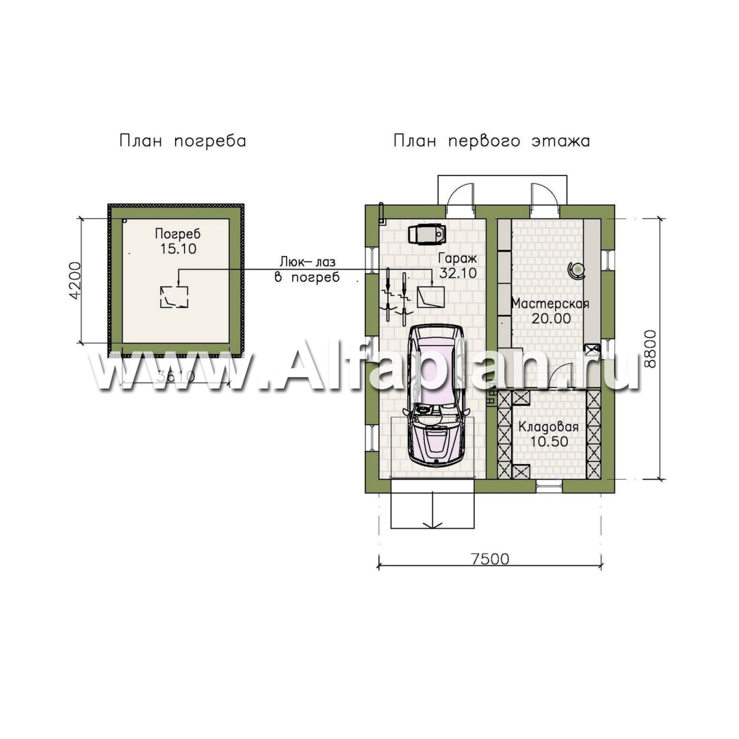 Проект гаража с мастерской и погребом