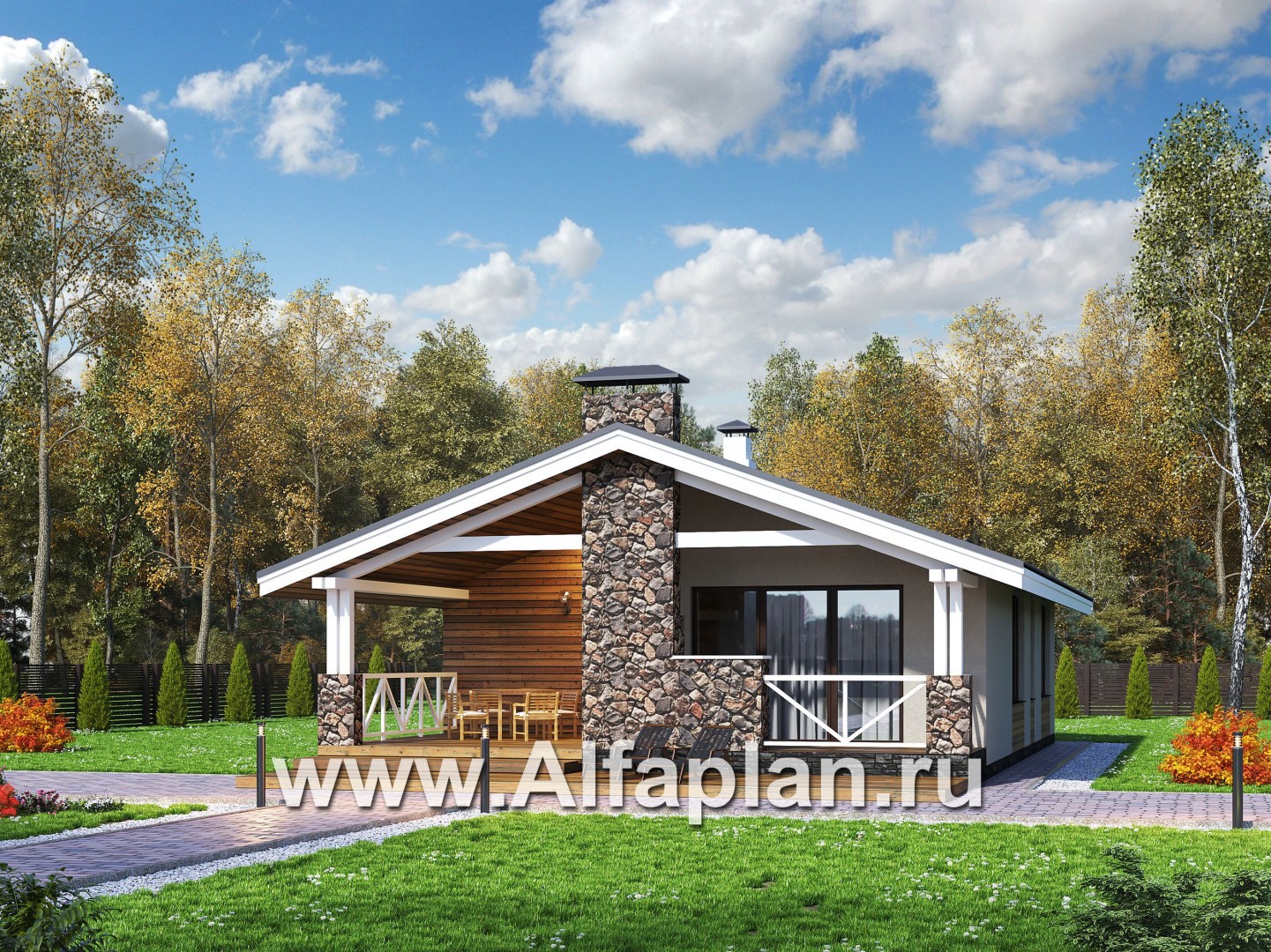 «Мелета» - проект одноэтажного дома из газобетона, 2 спальни, с террасой, в скандинавском стиле