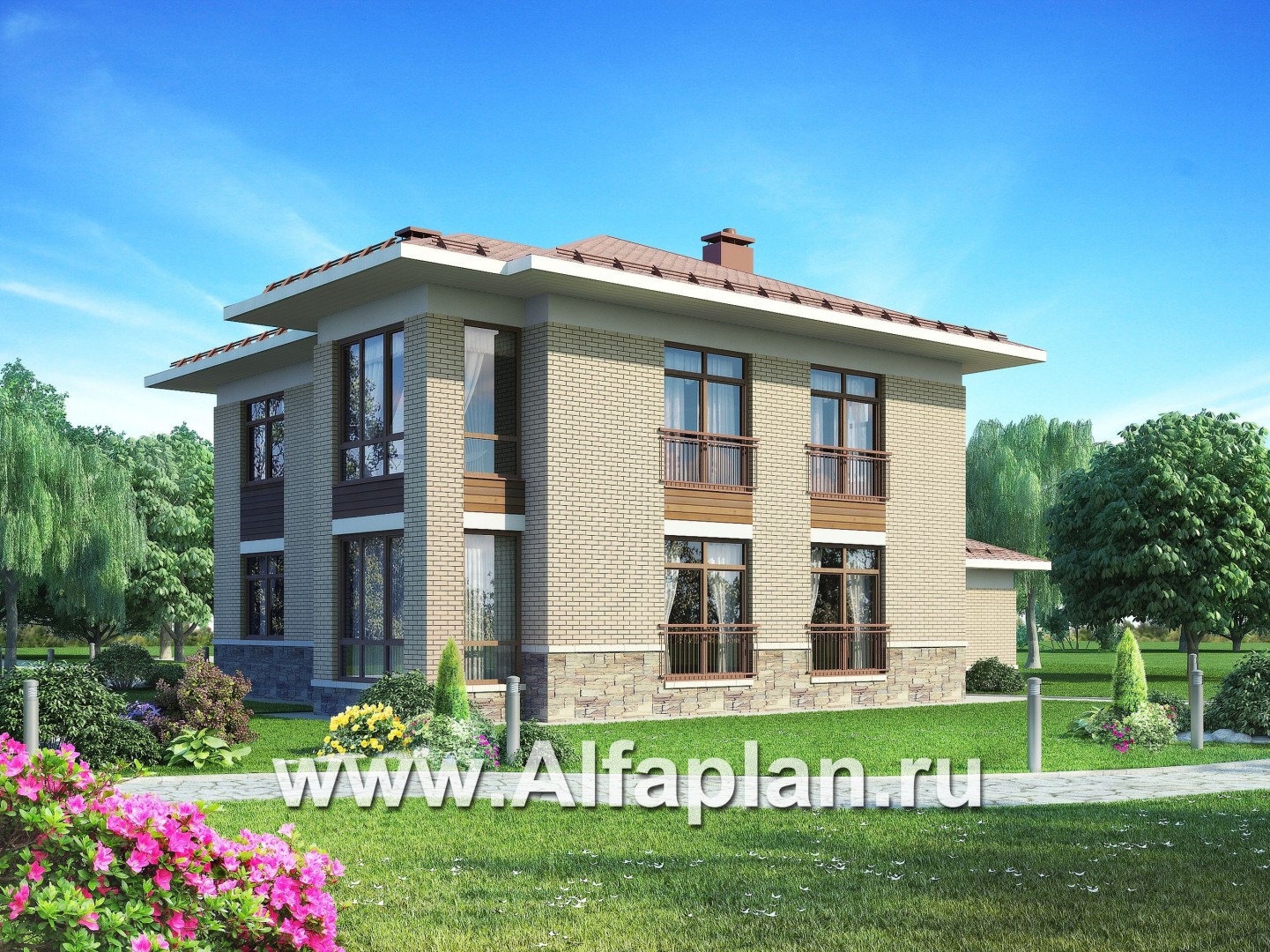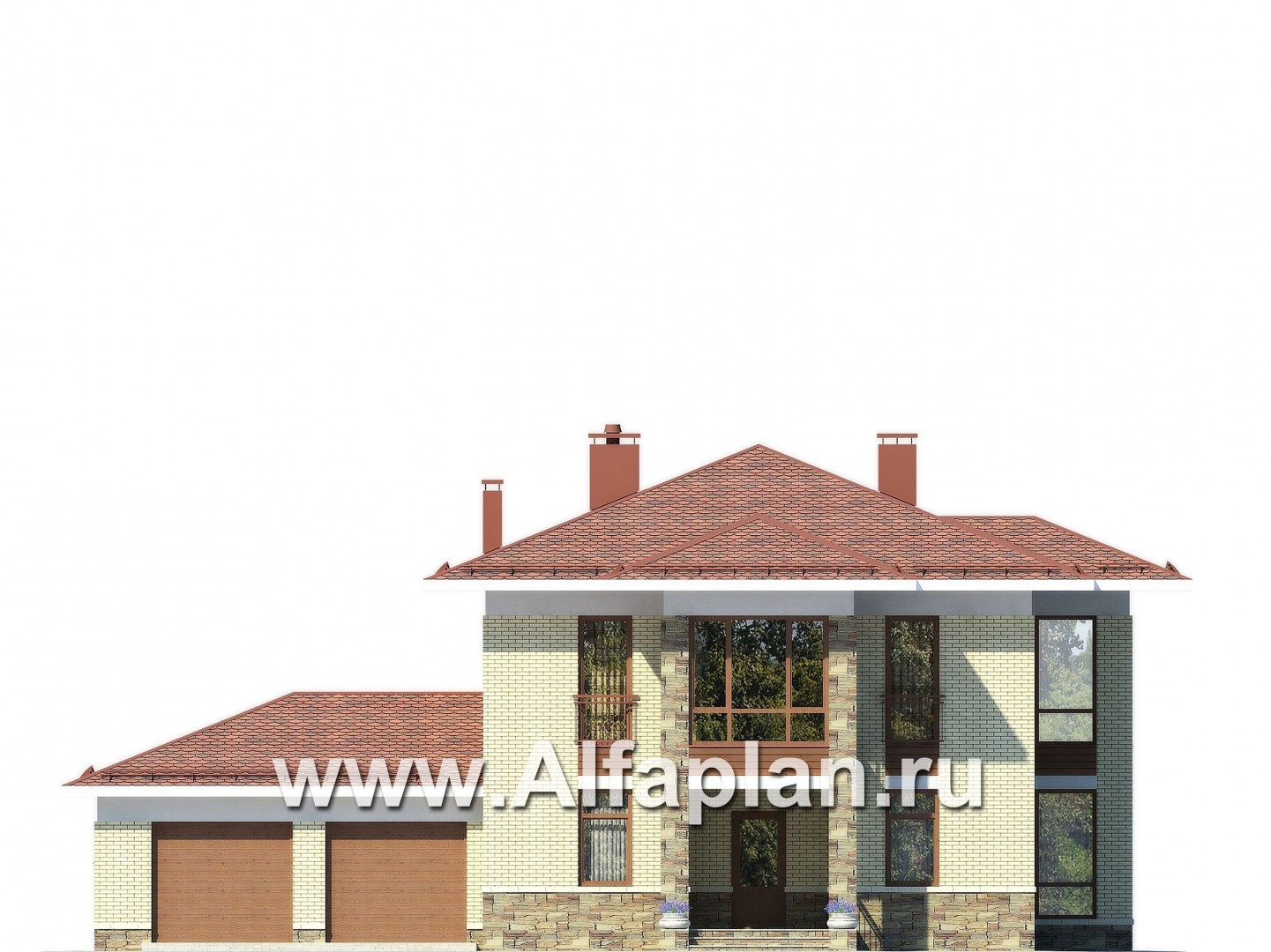 Проект двухэтажного дома из газобетона, планировка с гостевой на 1 эт и с гаражом на 2 авто, в современном стиле