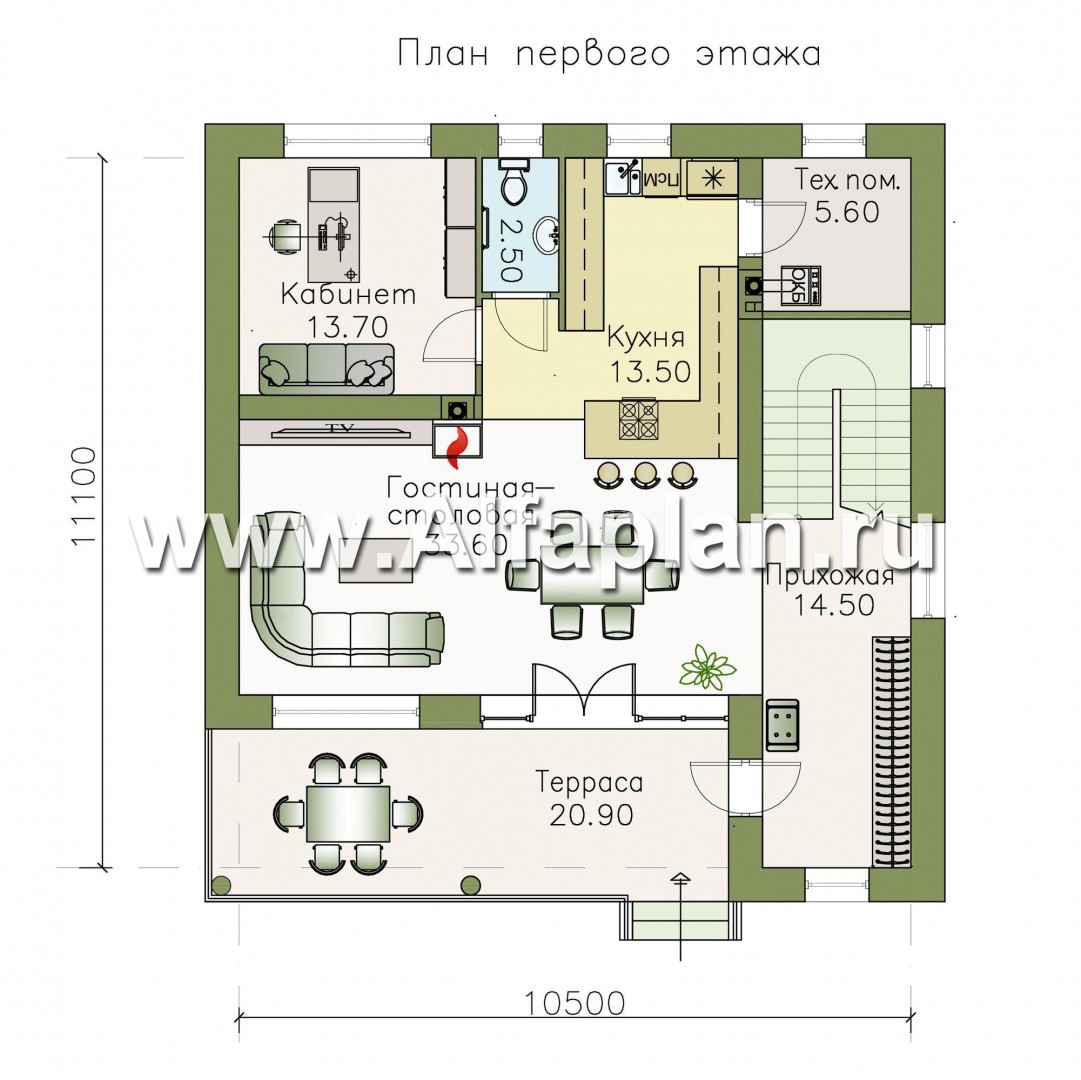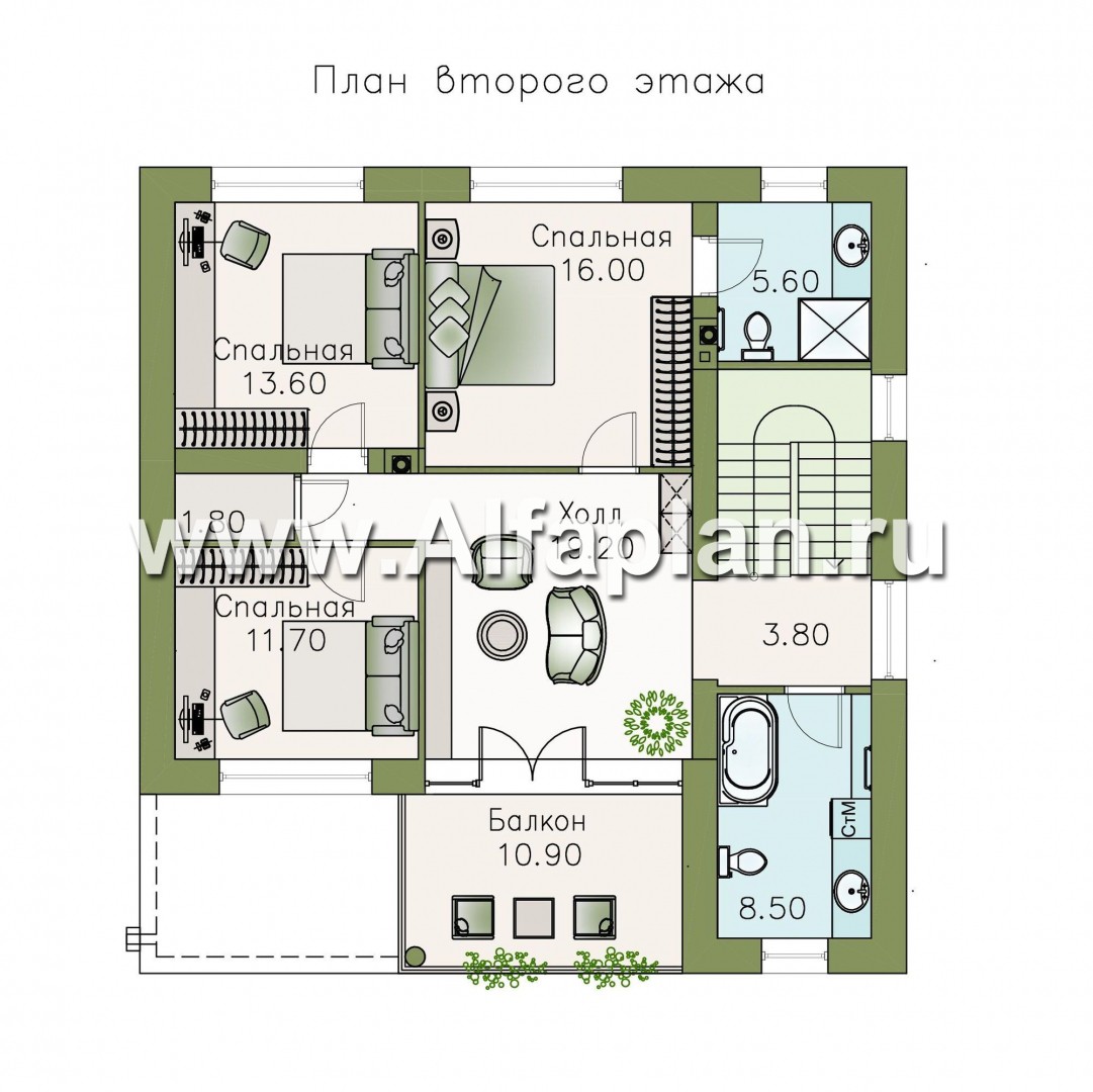 Проект разработан архитектурно-дизайнерской студией ®«Альфаплан». У нас – только уникальные авторские проекты домов.