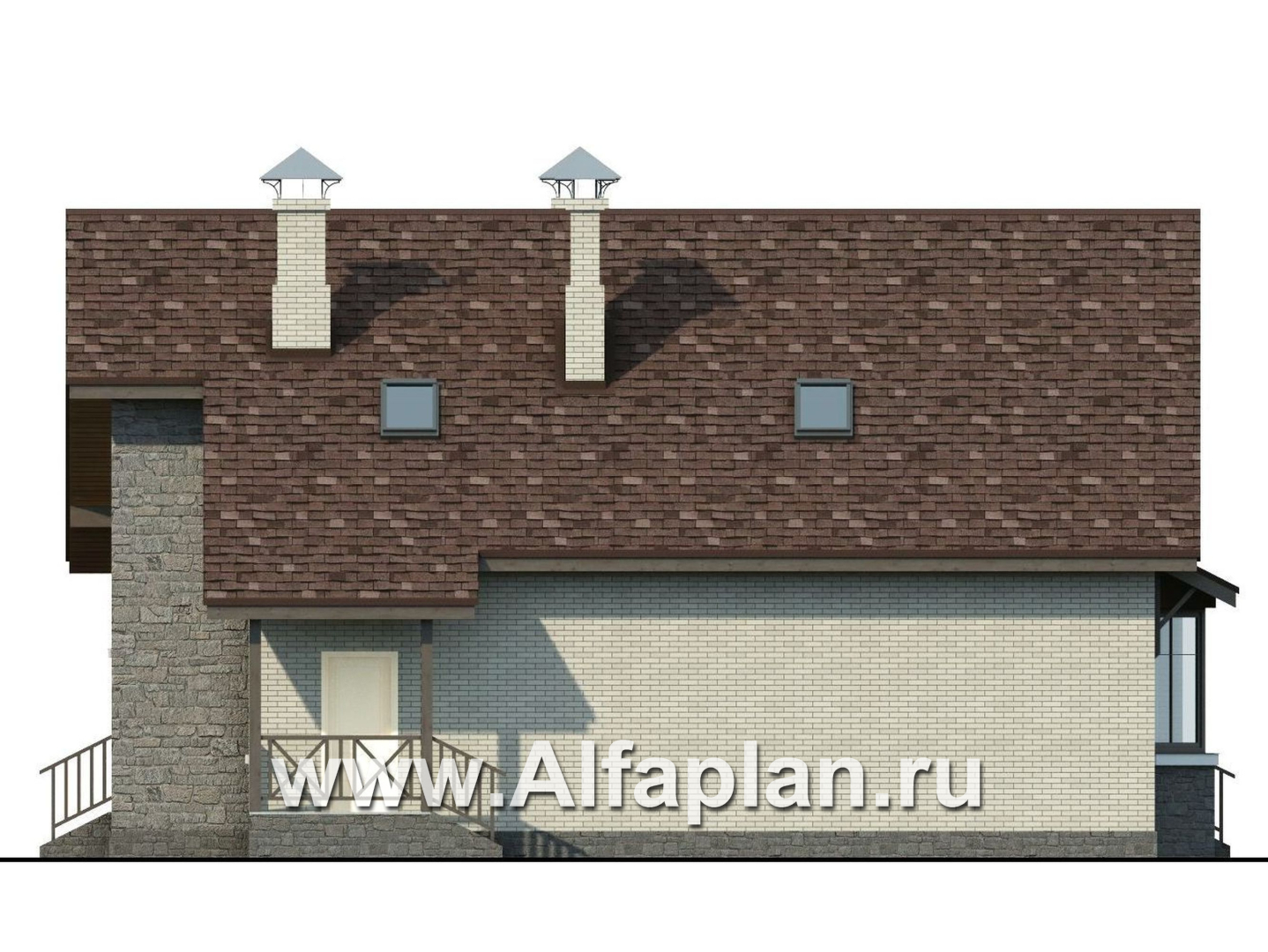 Фасад мансардного дома 182A «Зальцбург» запоминается красивым эркером лестницы на главном фасаде, облицованный натуральным или искусственным камнем. Над крыльцом дома – уютный балкон. Общая площадь дома 185 м2.