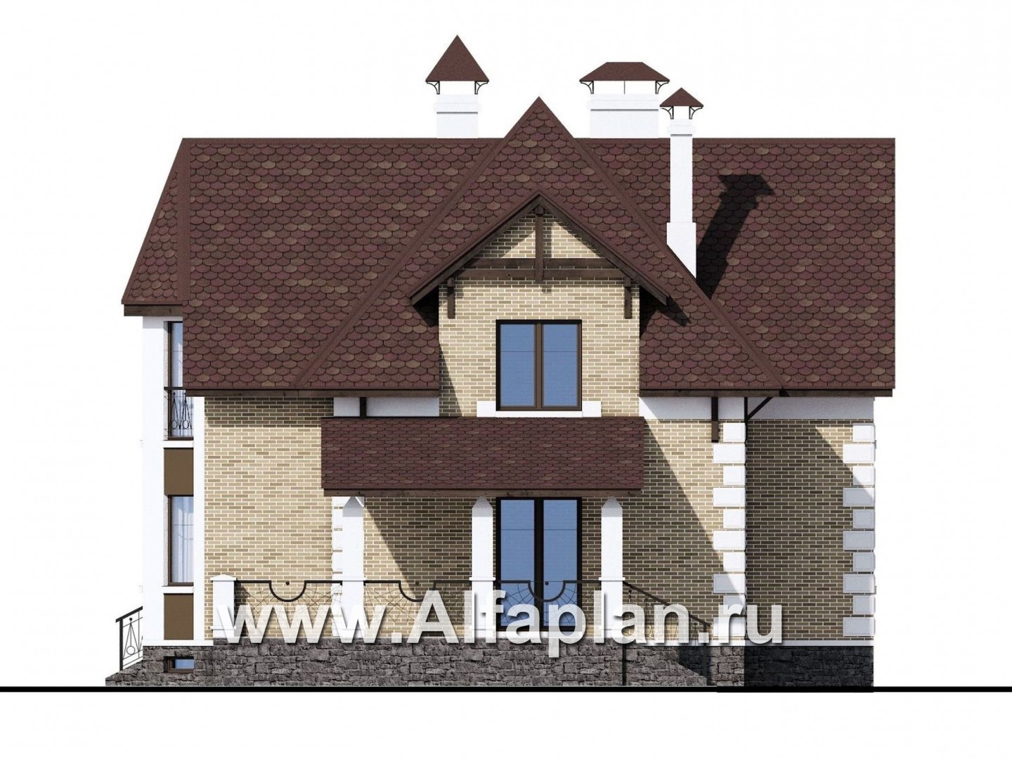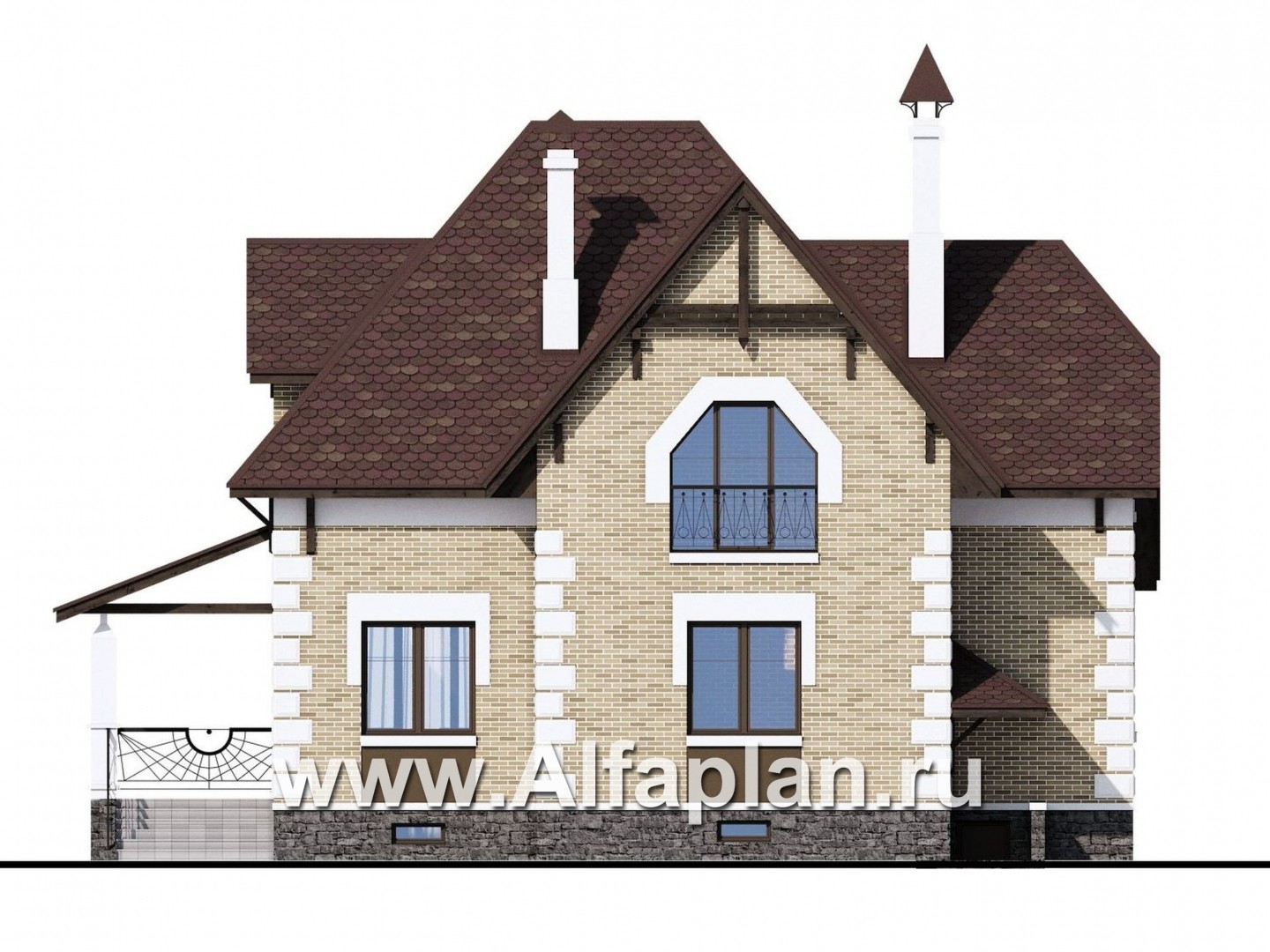 88AC-S «Клио Плюс» - проект дома с мансардой, с эркером и с террасой, с цокольным этажом