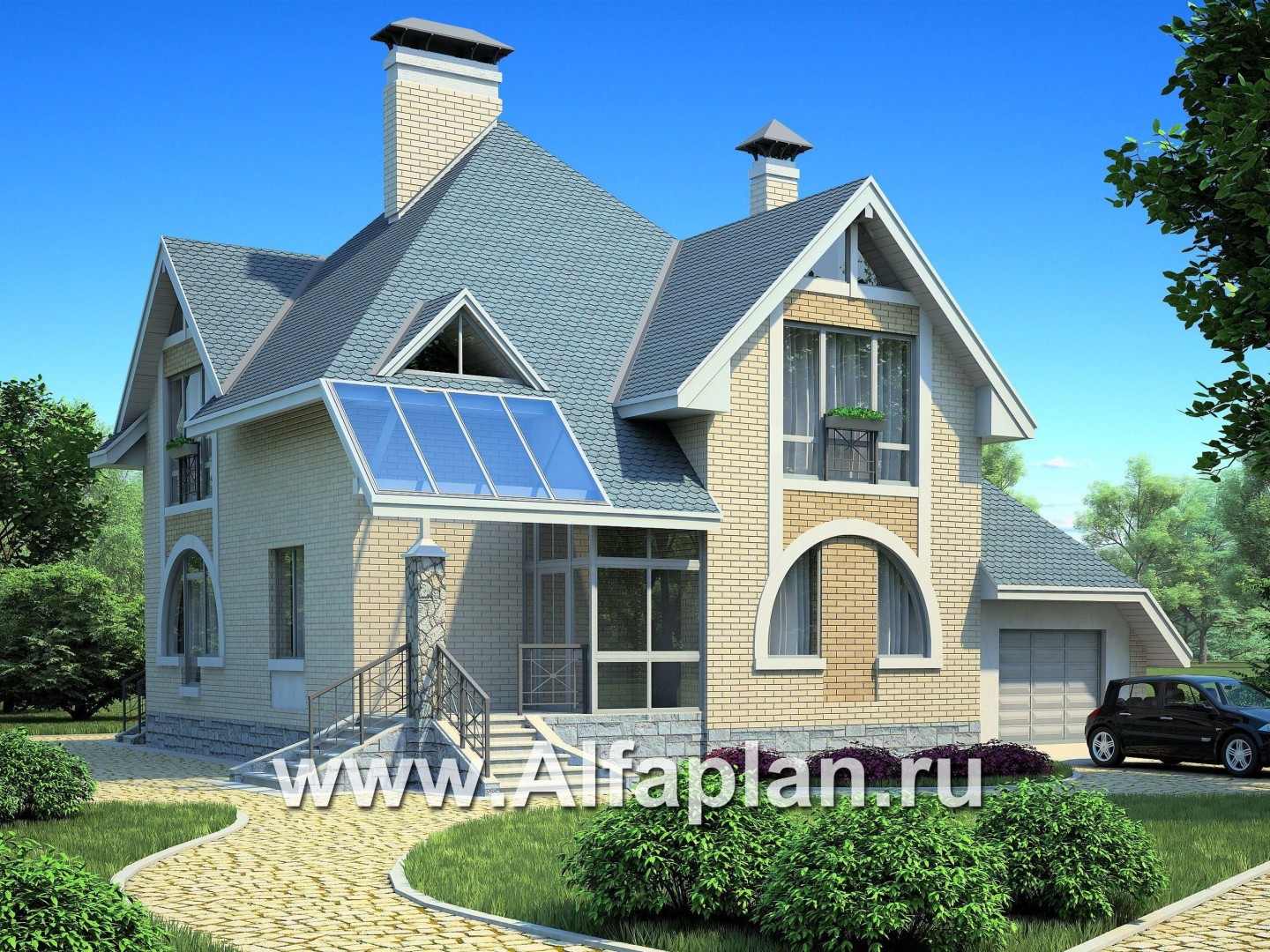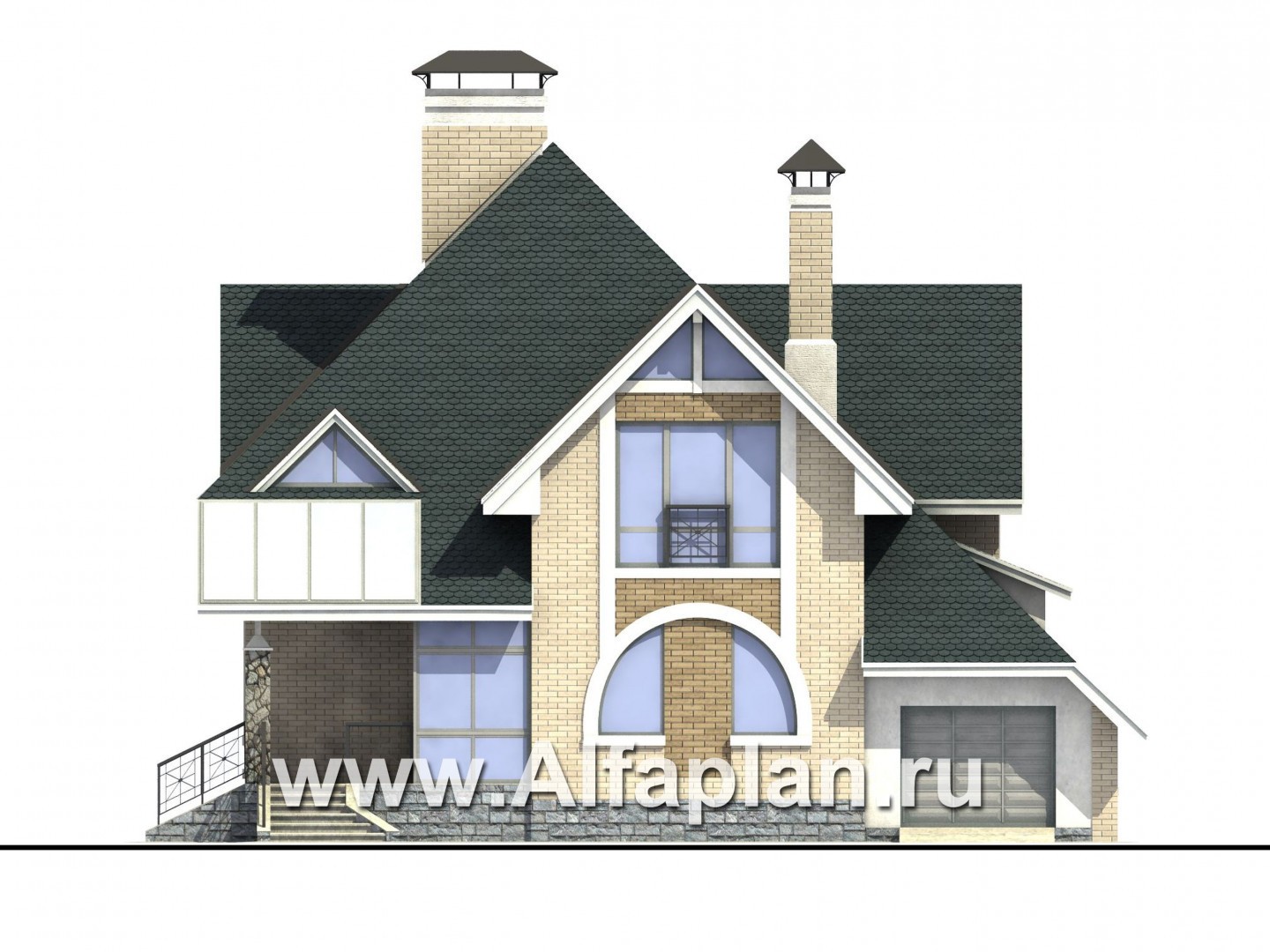 59A-S «Уютная гавань» - проект дома с мансардой, из кирпича, с террасой и с гаражом