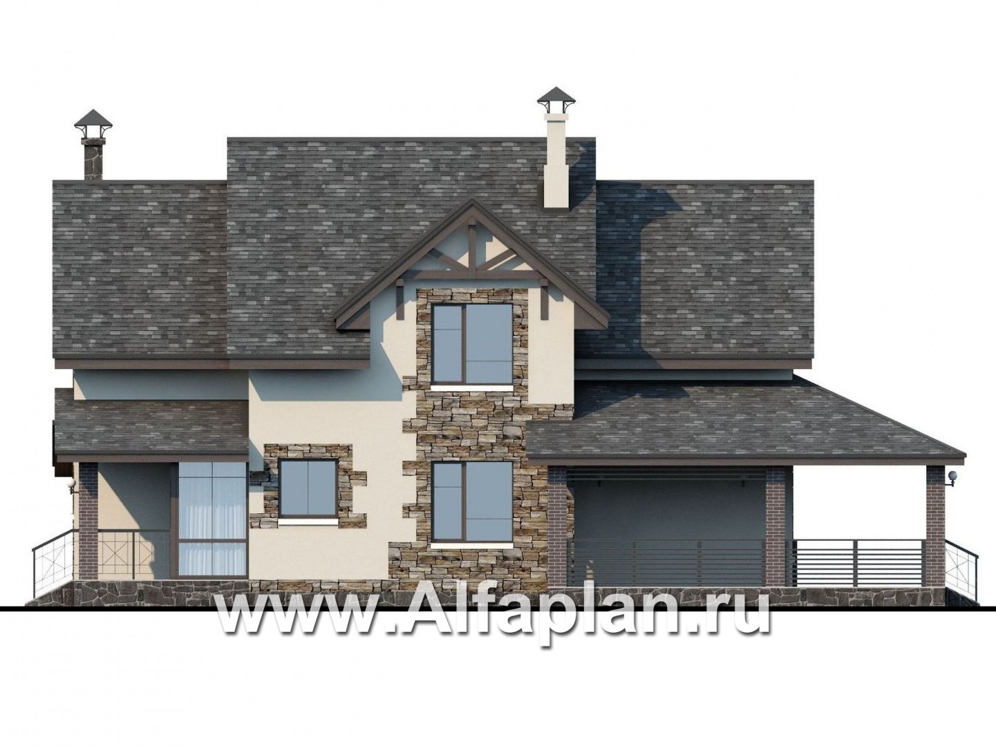 494A-S «Роза ветров» - проект дома с мансардой, в скандинавском стиле для узкого участка, с летней куxней