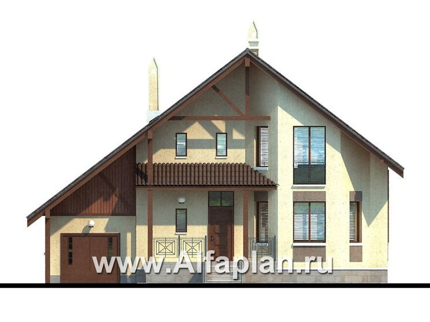 «Регенсбург» - проект дома из газобетона, с эркером и с гаражом, с сауной, в немецком стиле