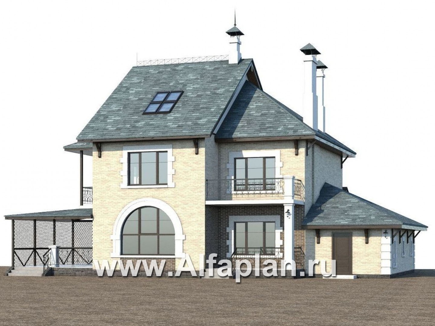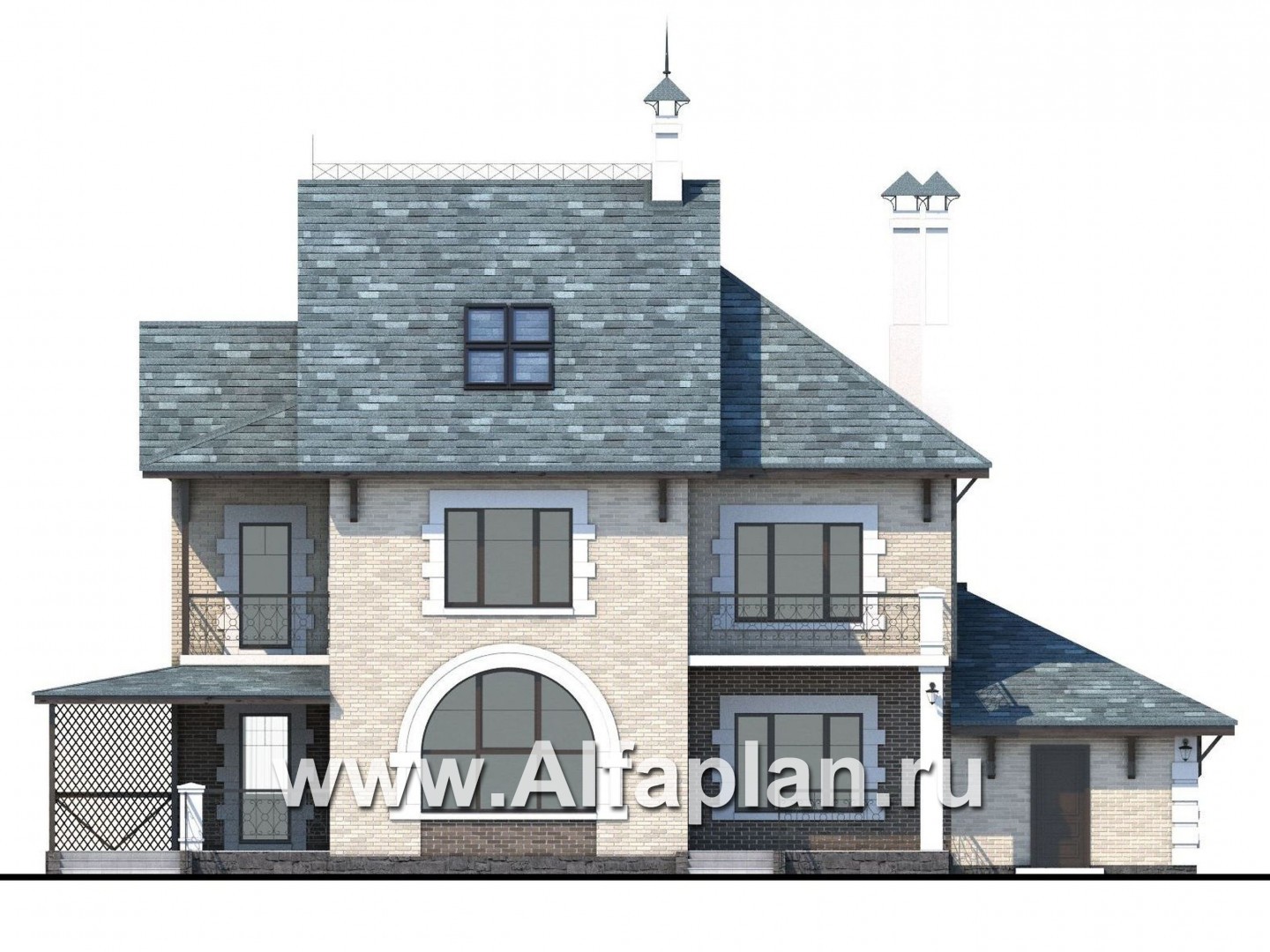 395B-S «Северная регата» -проект двухэтажного дома с мансардой, с террасой и кинозалом, гараж на 1 авто