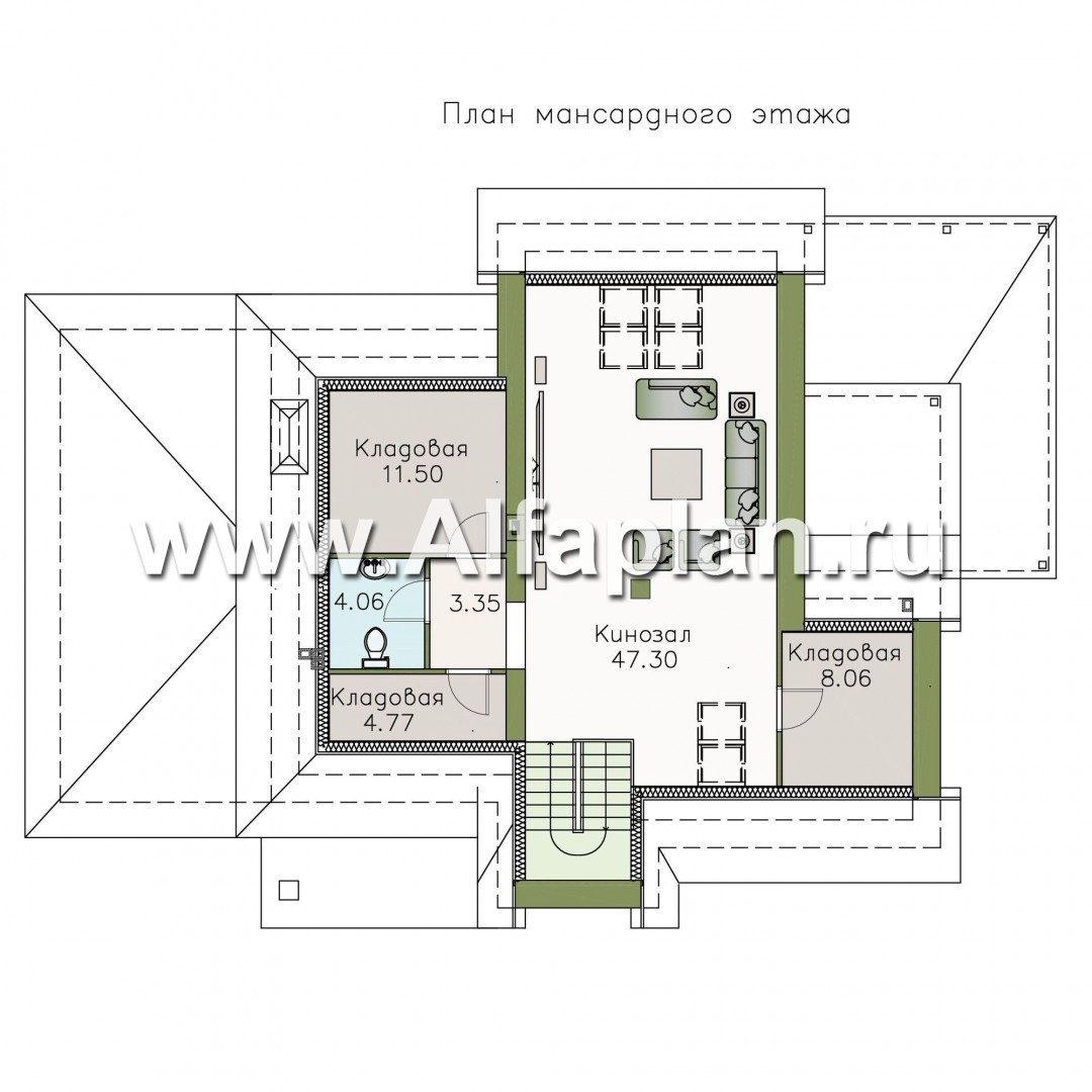 Площадь мансарды 79.04 м²