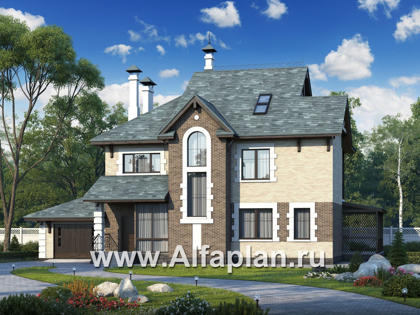Наружная отделка стен лицевой кирпич и декоративная штукатурка