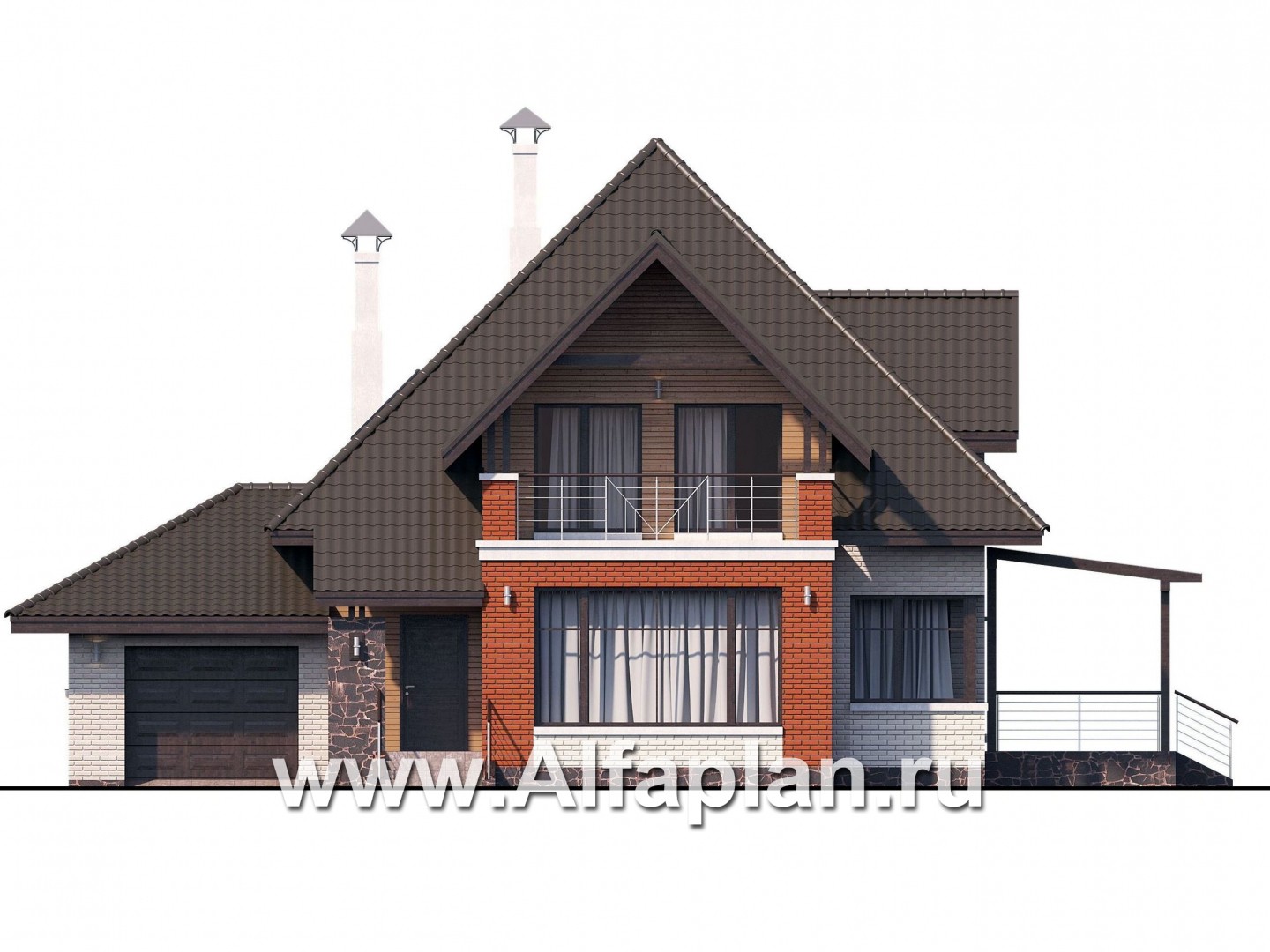 «Арктур» - проект дома с мансардой, из газобетона, с сауной и с террасой, с гаражом, современный стиль