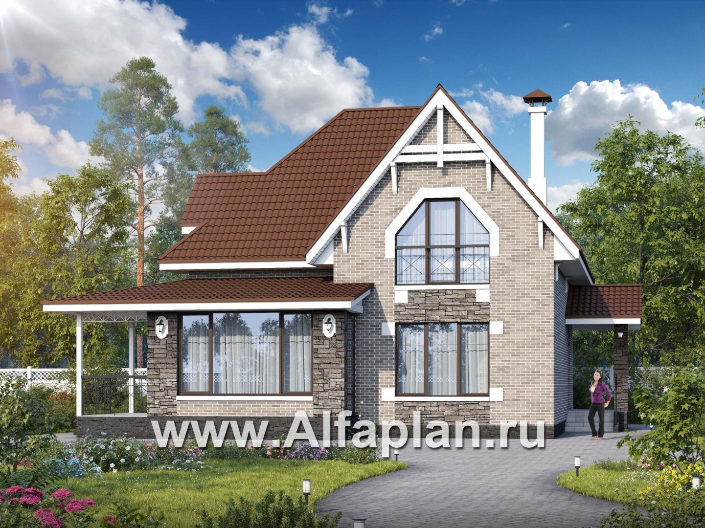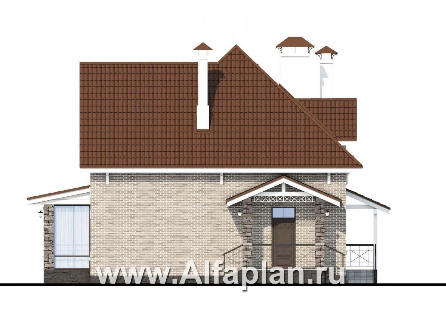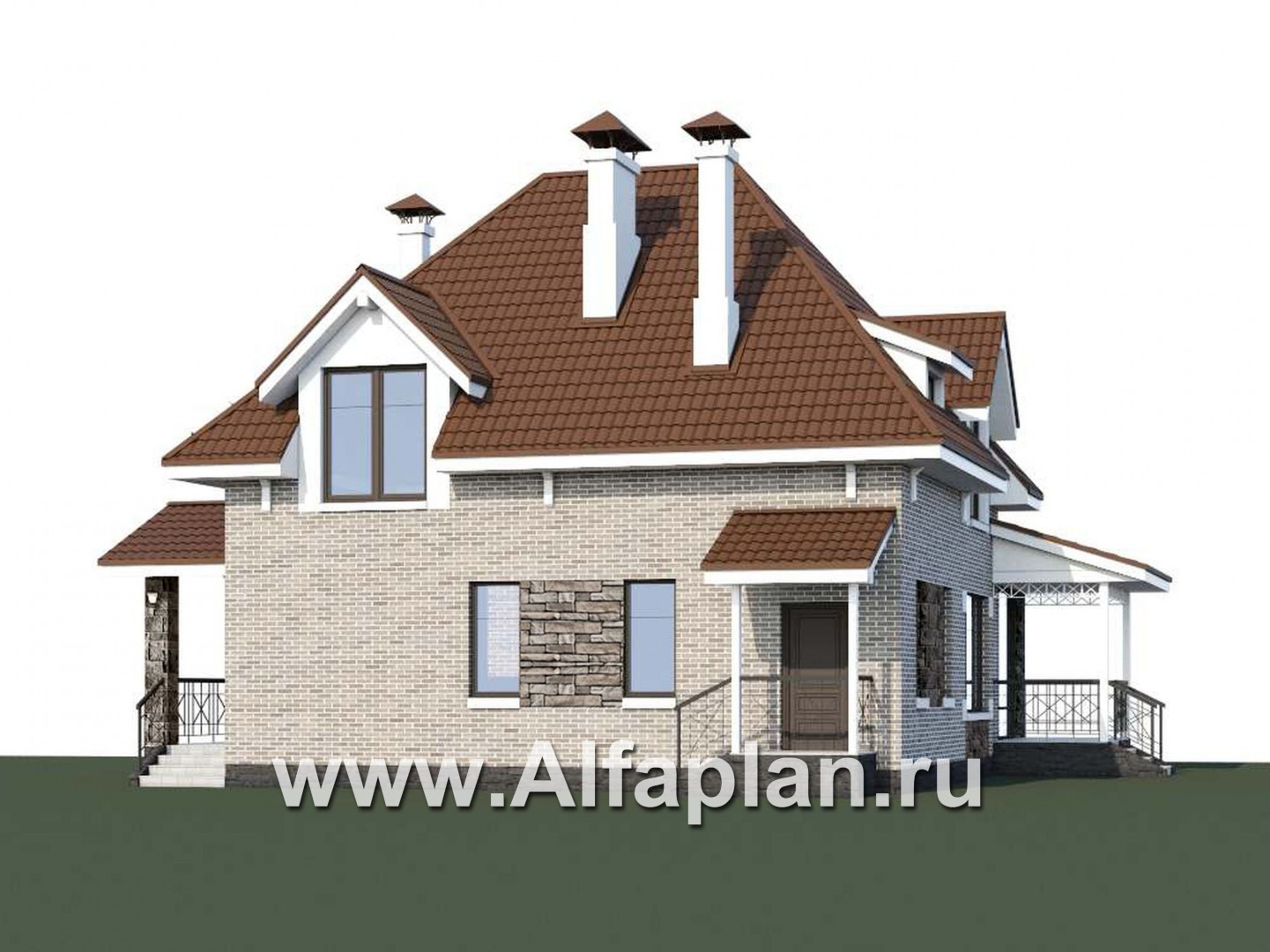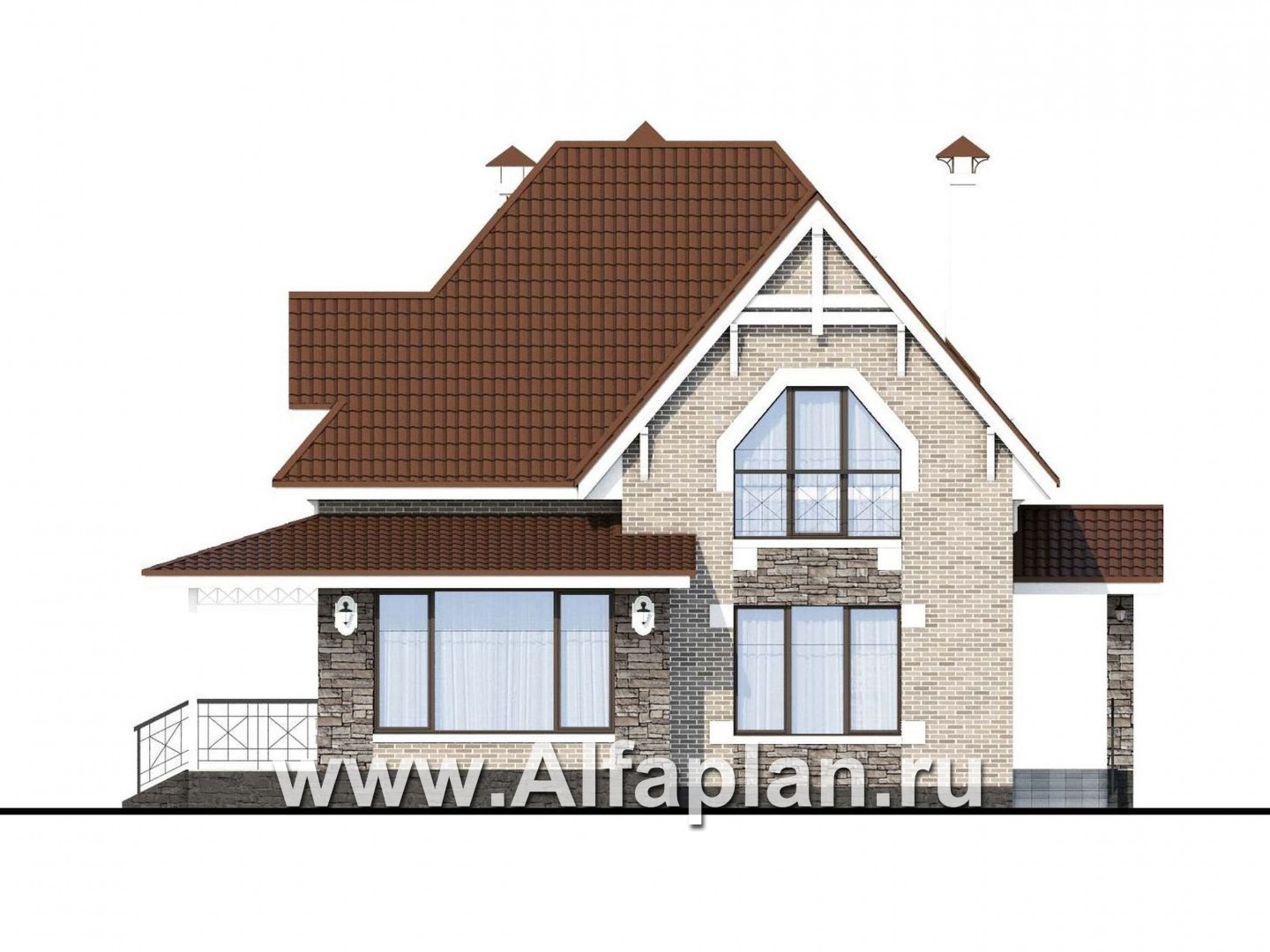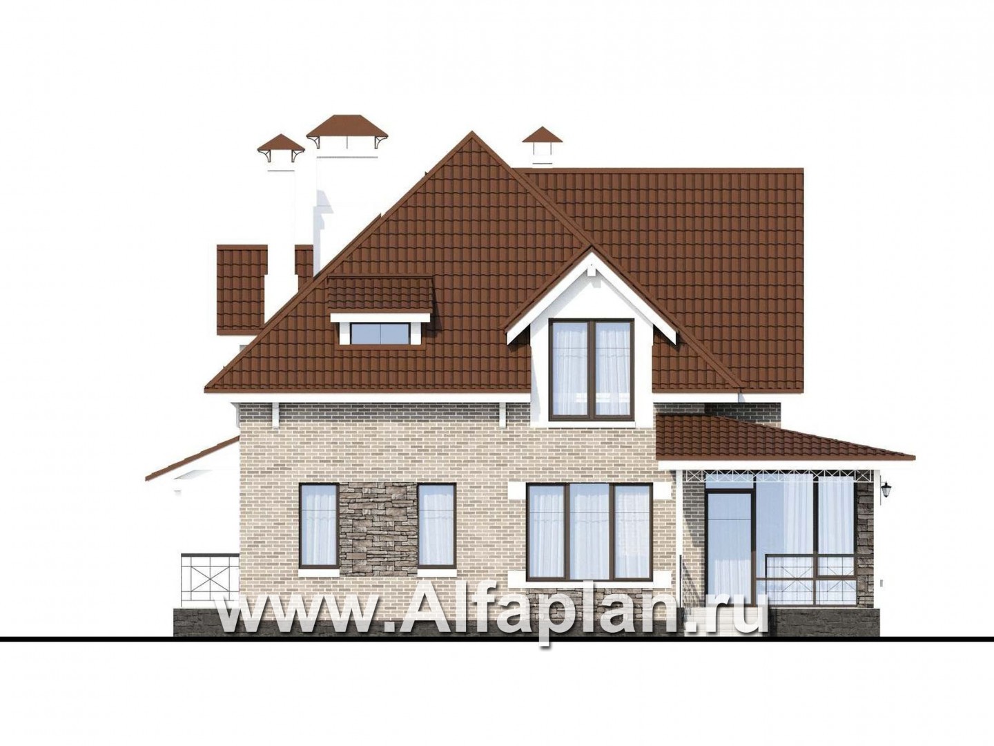 365A-S «Галант» - проект двухэтажного дома с мансардой, из кирпичей, с террасой со стороны входа