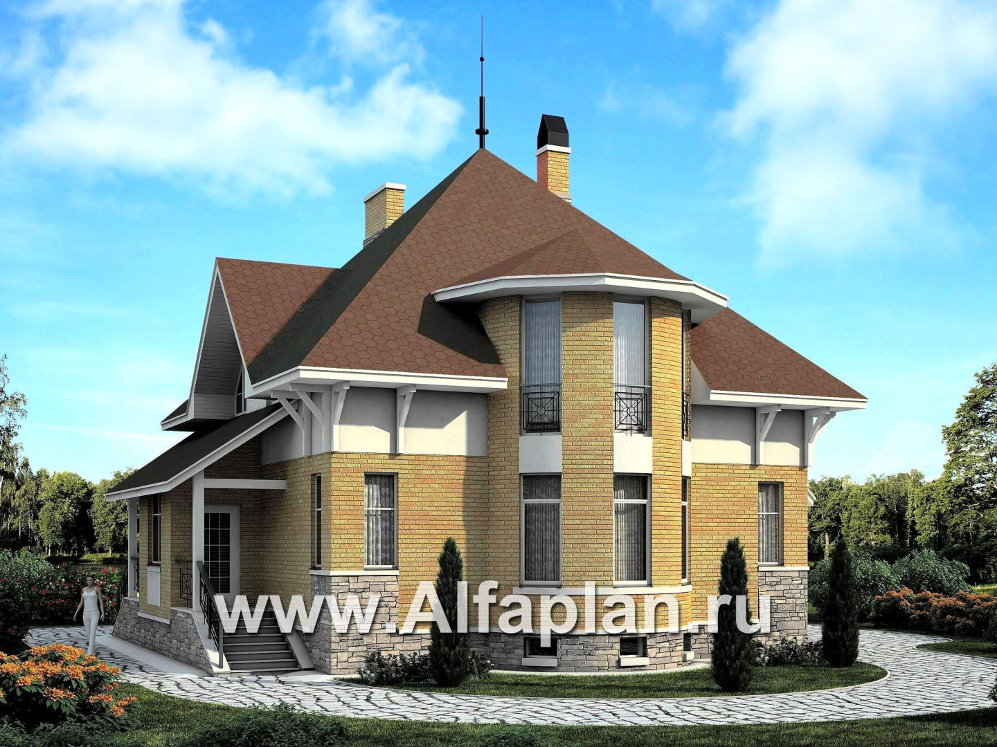 Проект «Петит плюс» – это очень удачный пример современной архитектуры, которая получилась изящной внешне и функциональной по внутренним данным. Эта модель имеет несколько отличительных характеристик, делающих ее особенной. Во-первых, это аж 4 эркера, по одному с каждой стороны здания (все разной формы и размера). Во-вторых, это, конечно же, роскошной площади цокольный этаж.
