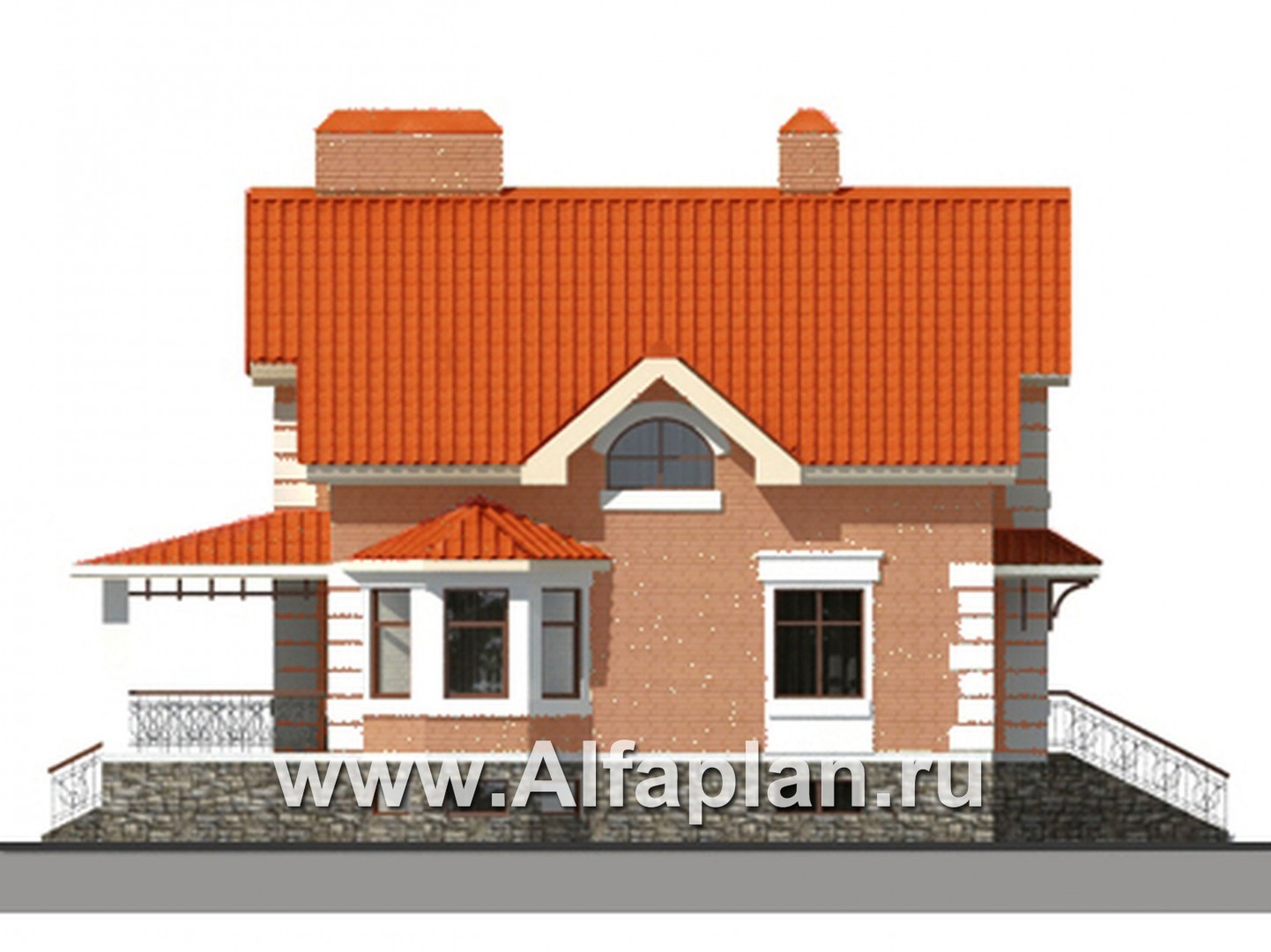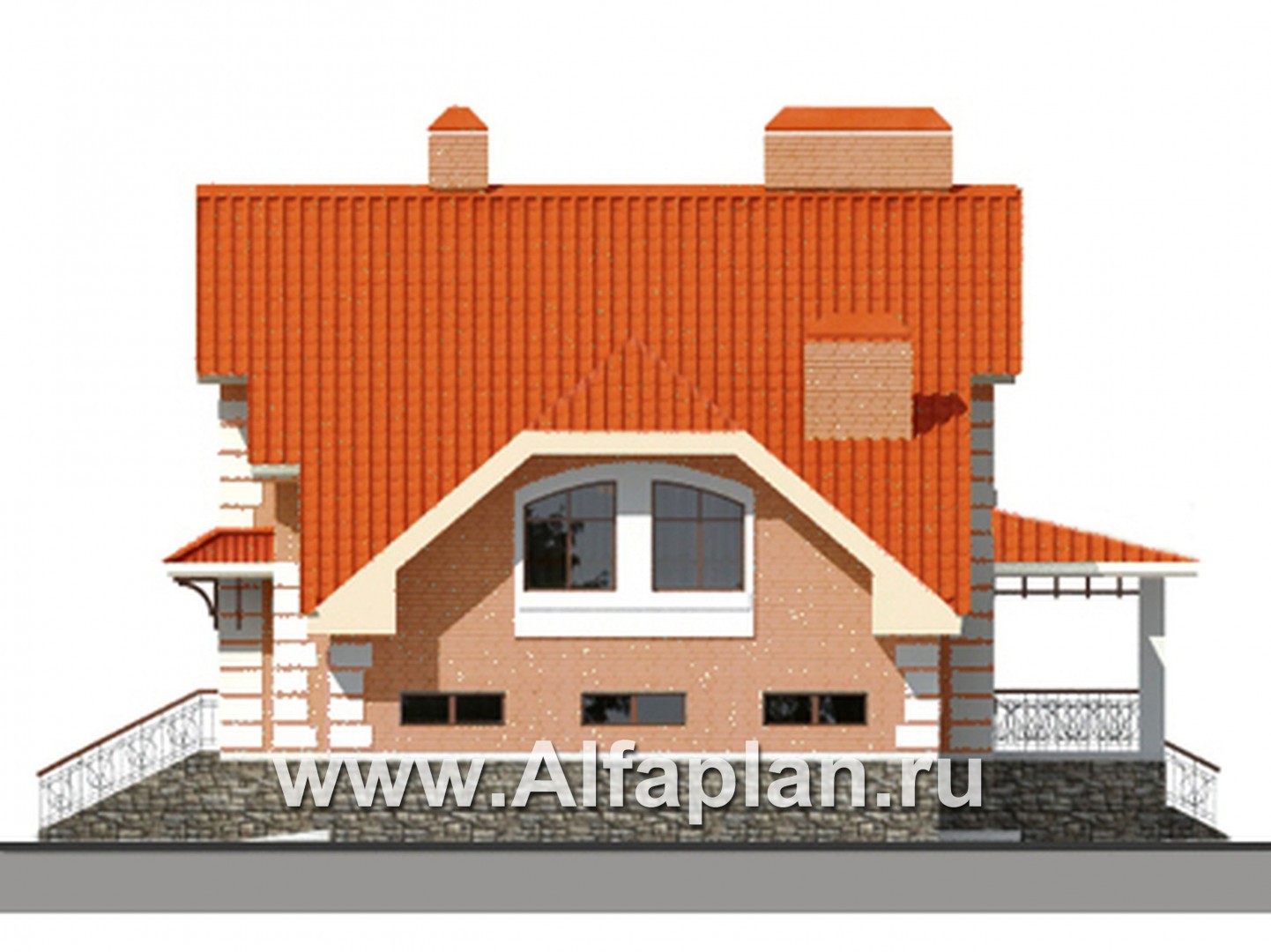 Проект дома с мансардой, план с эркером и с террасой, с гаражом и с цокольным этажом