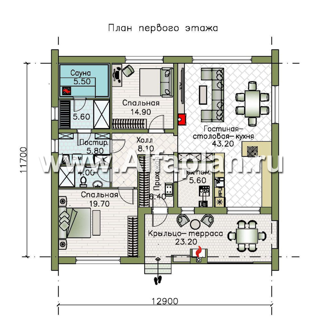 «Веда» - проект одноэтажного дома с сауной, с террасой, в стиле барн - технические характеристики