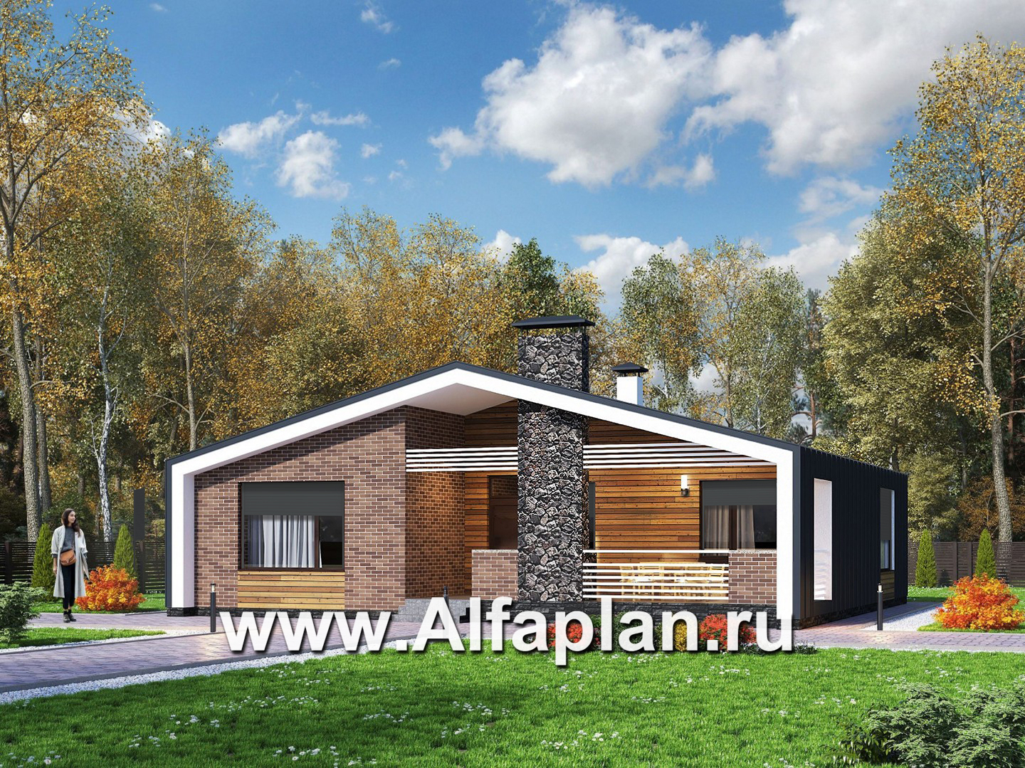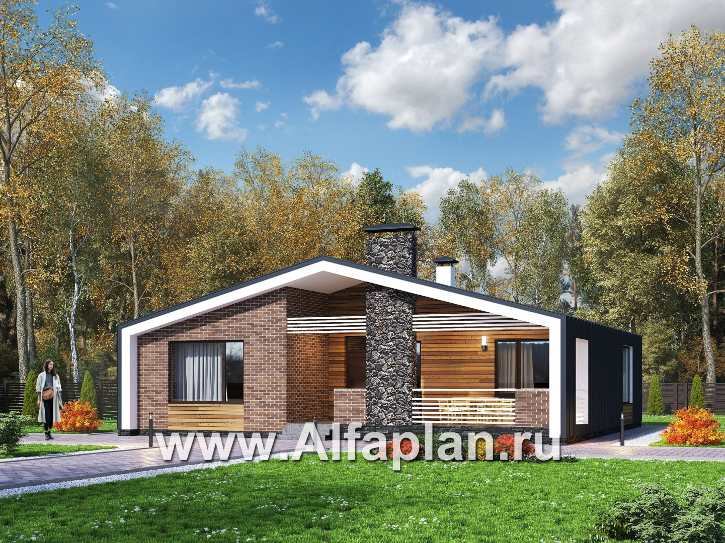 «Веда» - проект одноэтажного дома с сауной, с террасой, в стиле барн