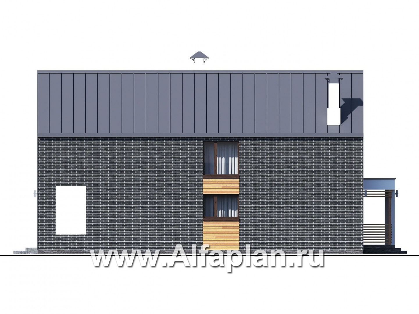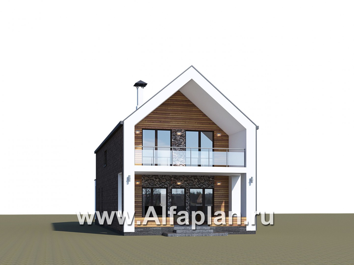 «Барн» - проект дома с мансардой, современный стиль барнхаус, с террасой и балконом