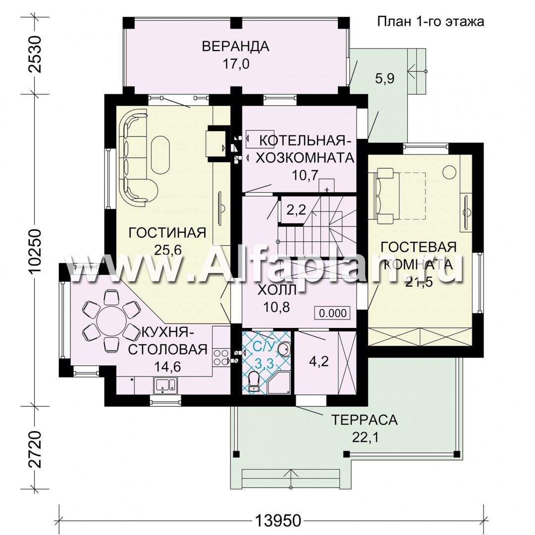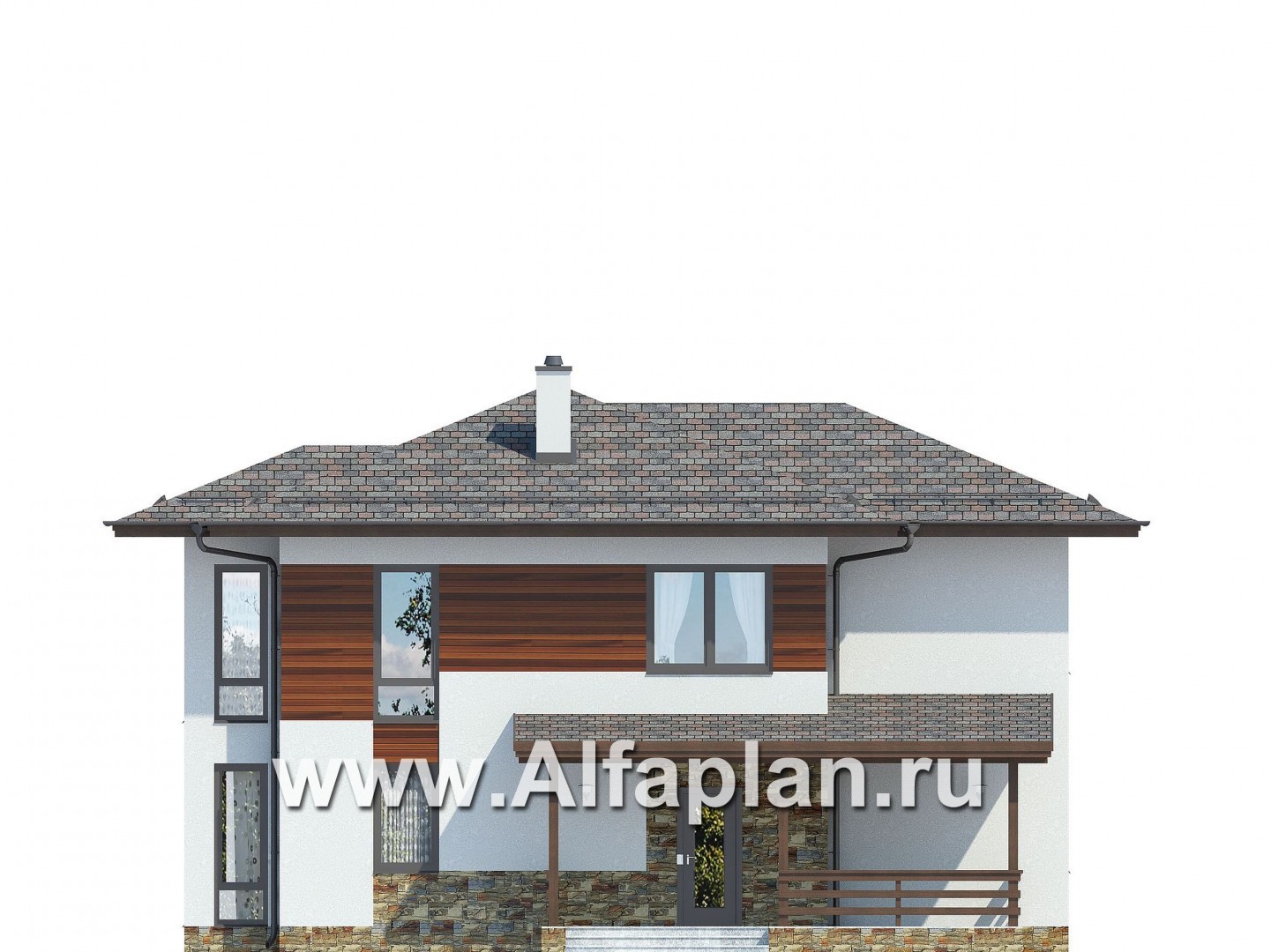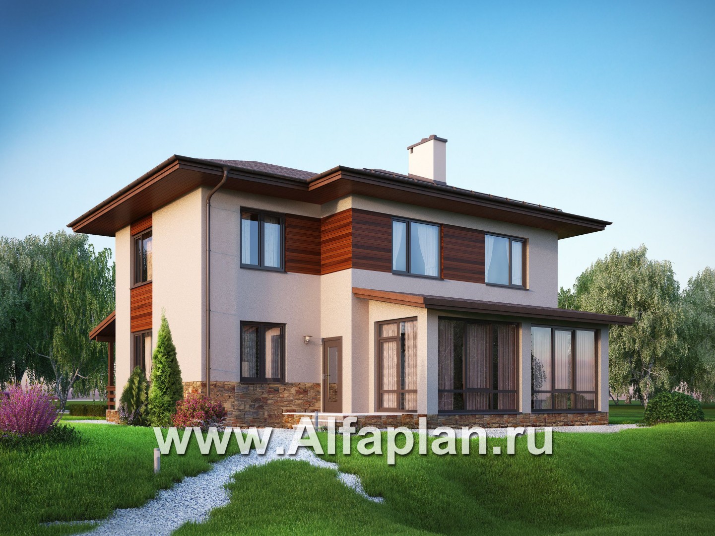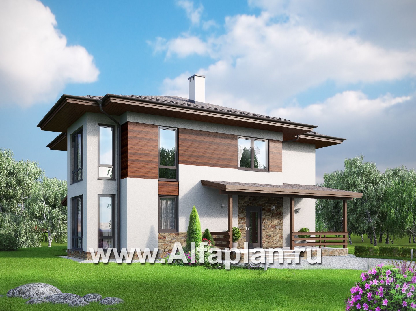Проект двухэтажного дома, планировка с гостевой на 1 эт, с террасой, в современном стиле