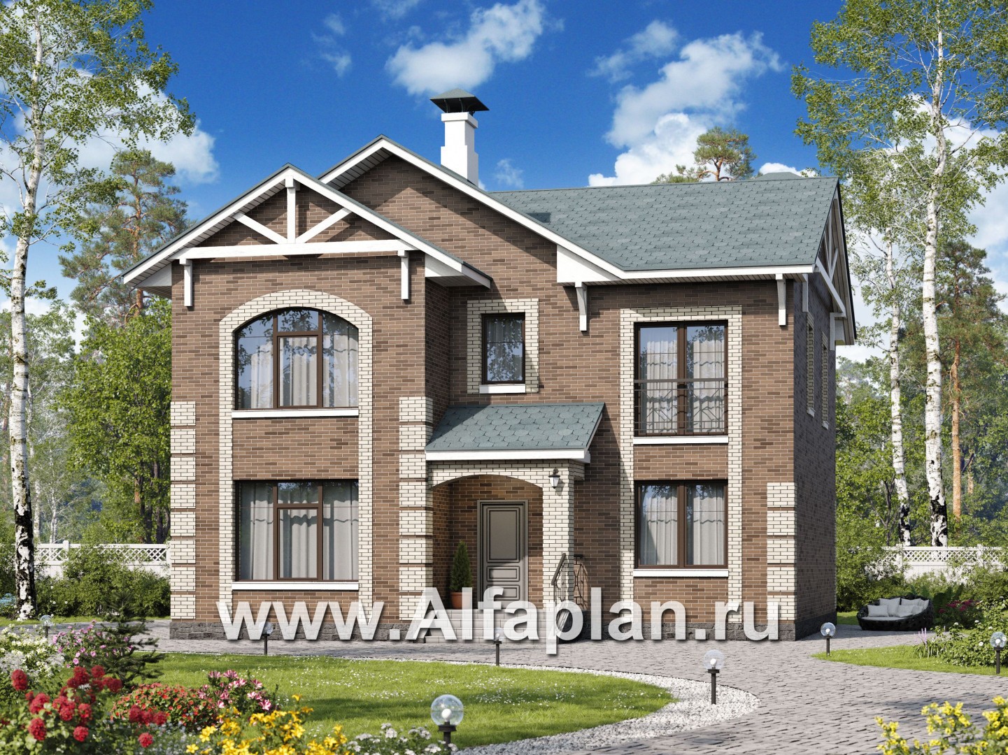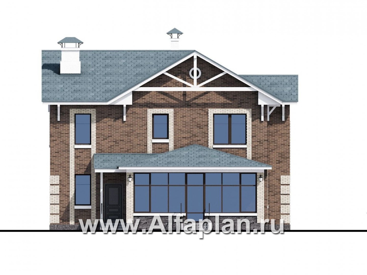 «Традиция» - проект двухэтажного дома из кирпича, планировка с кабинетом на 1 эт, с террасой
