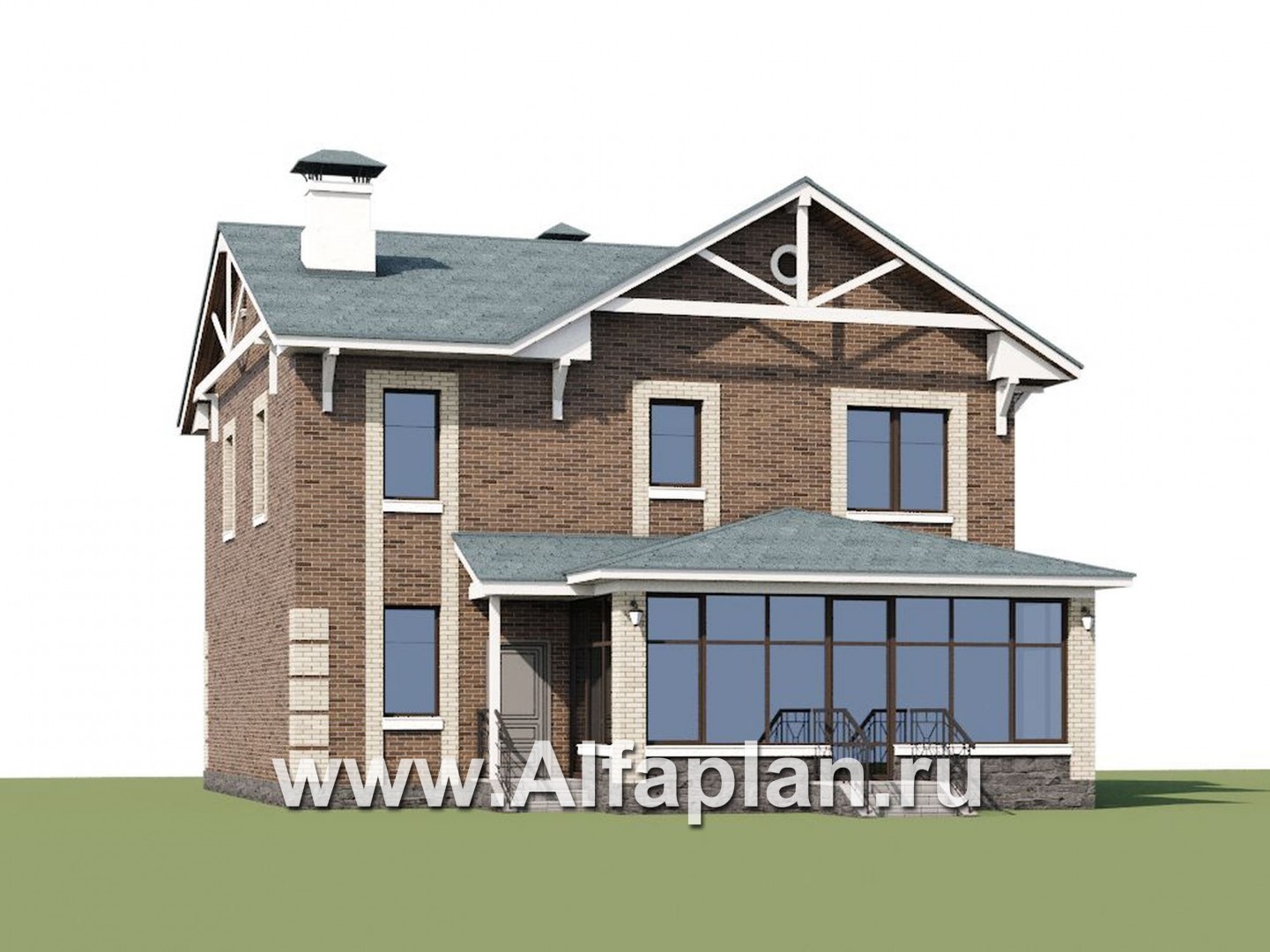 506A-2 «Традиция» - проект двухэтажного дома из кирпича, планировка с кабинетом на 1 эт, с террасой